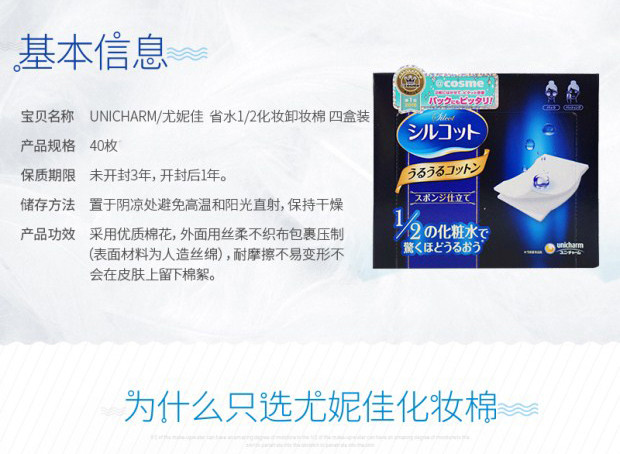 【一般贸易】2盒丨日本尤妮佳 省水二分之一化妆棉40枚