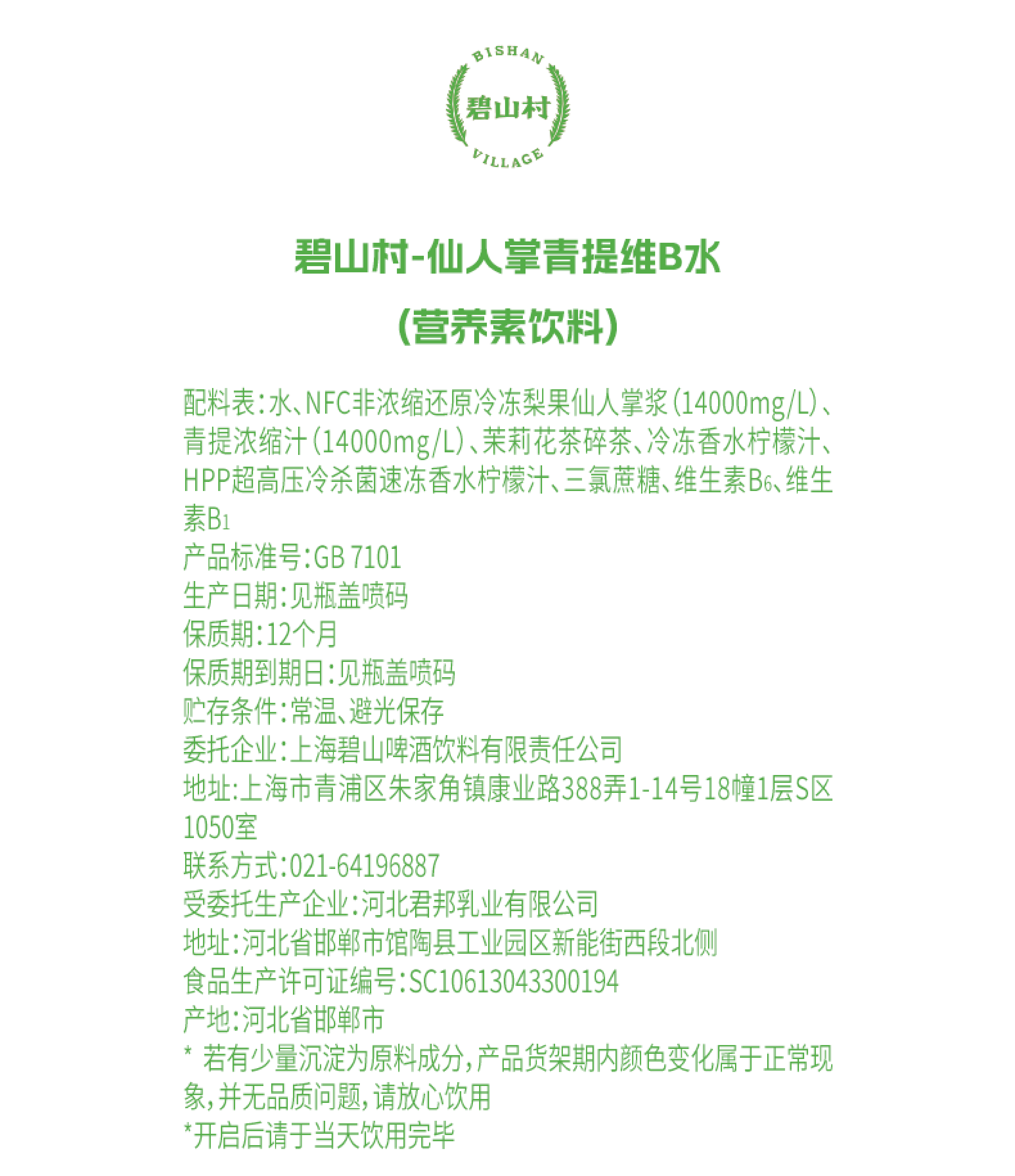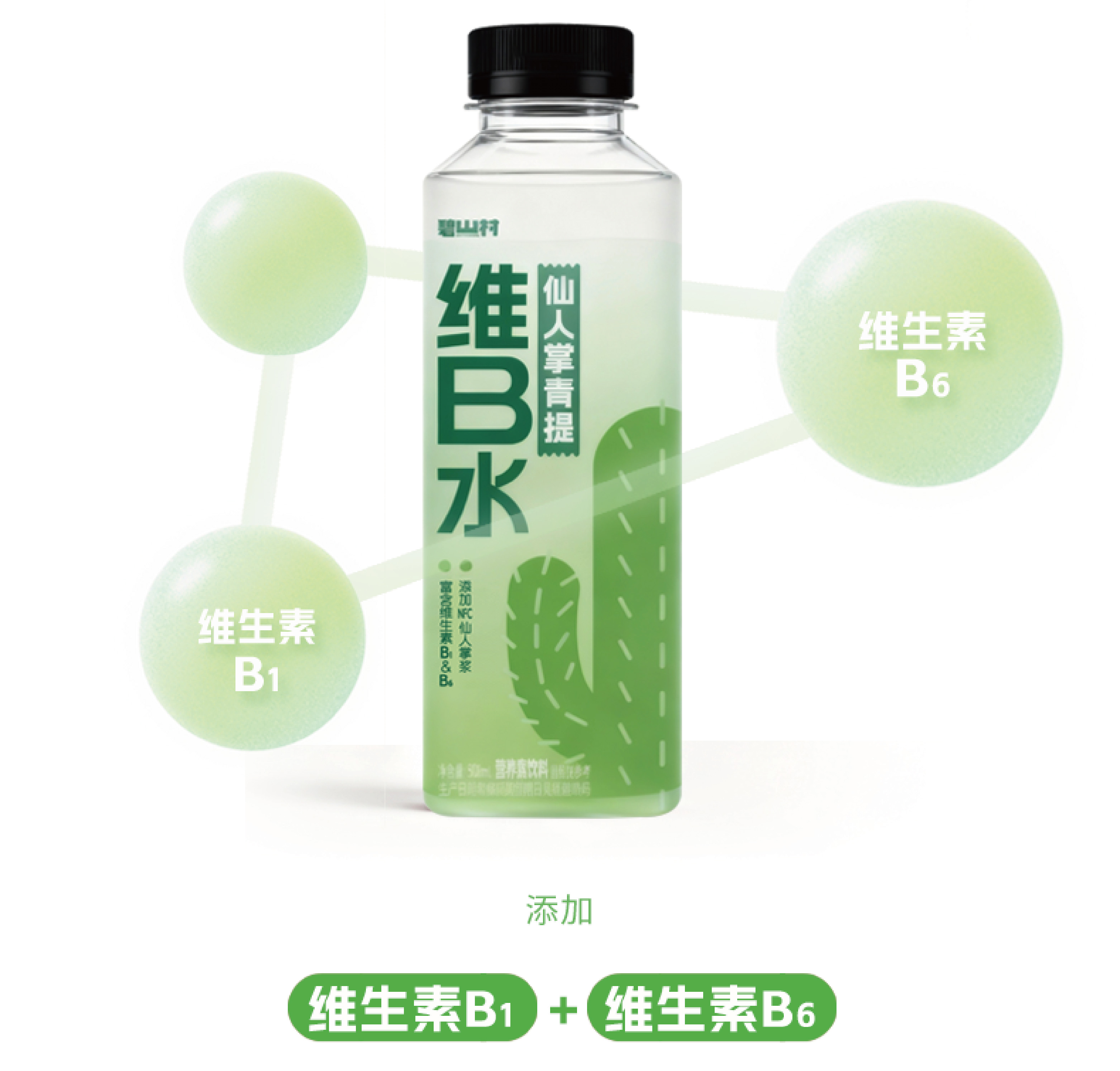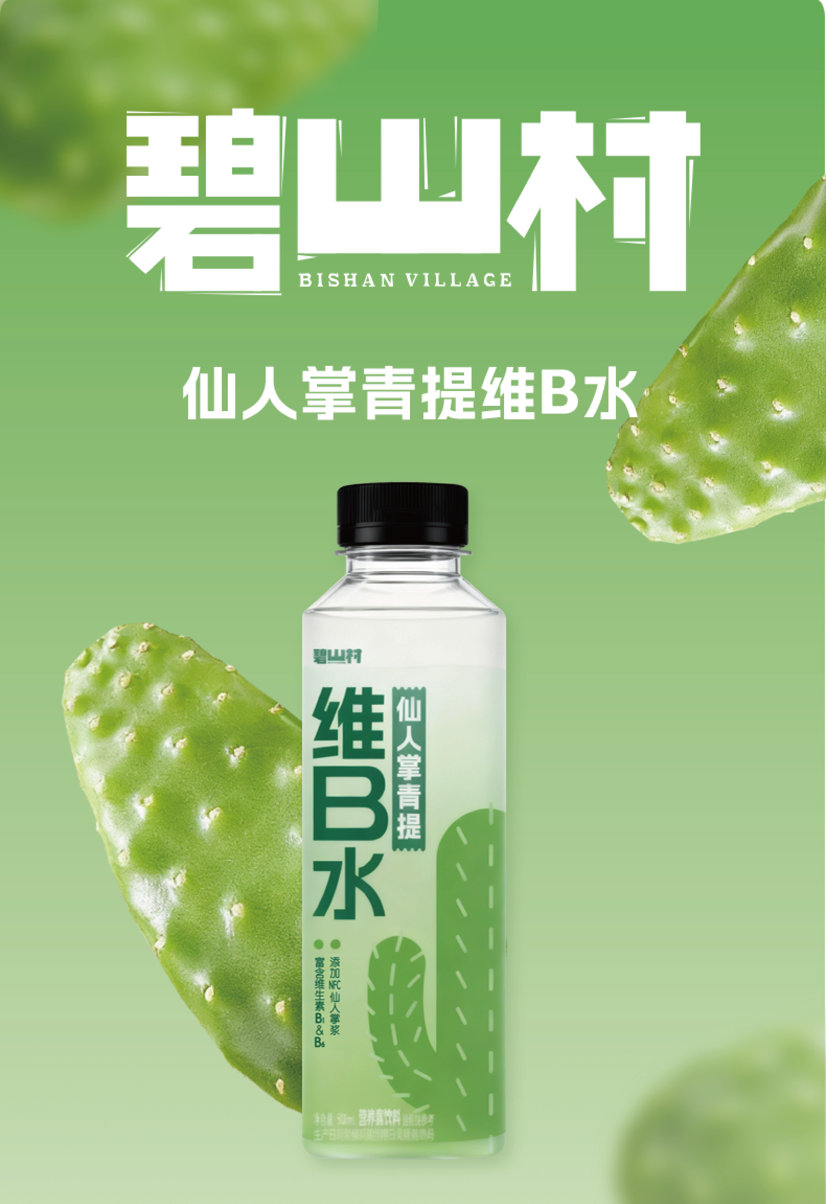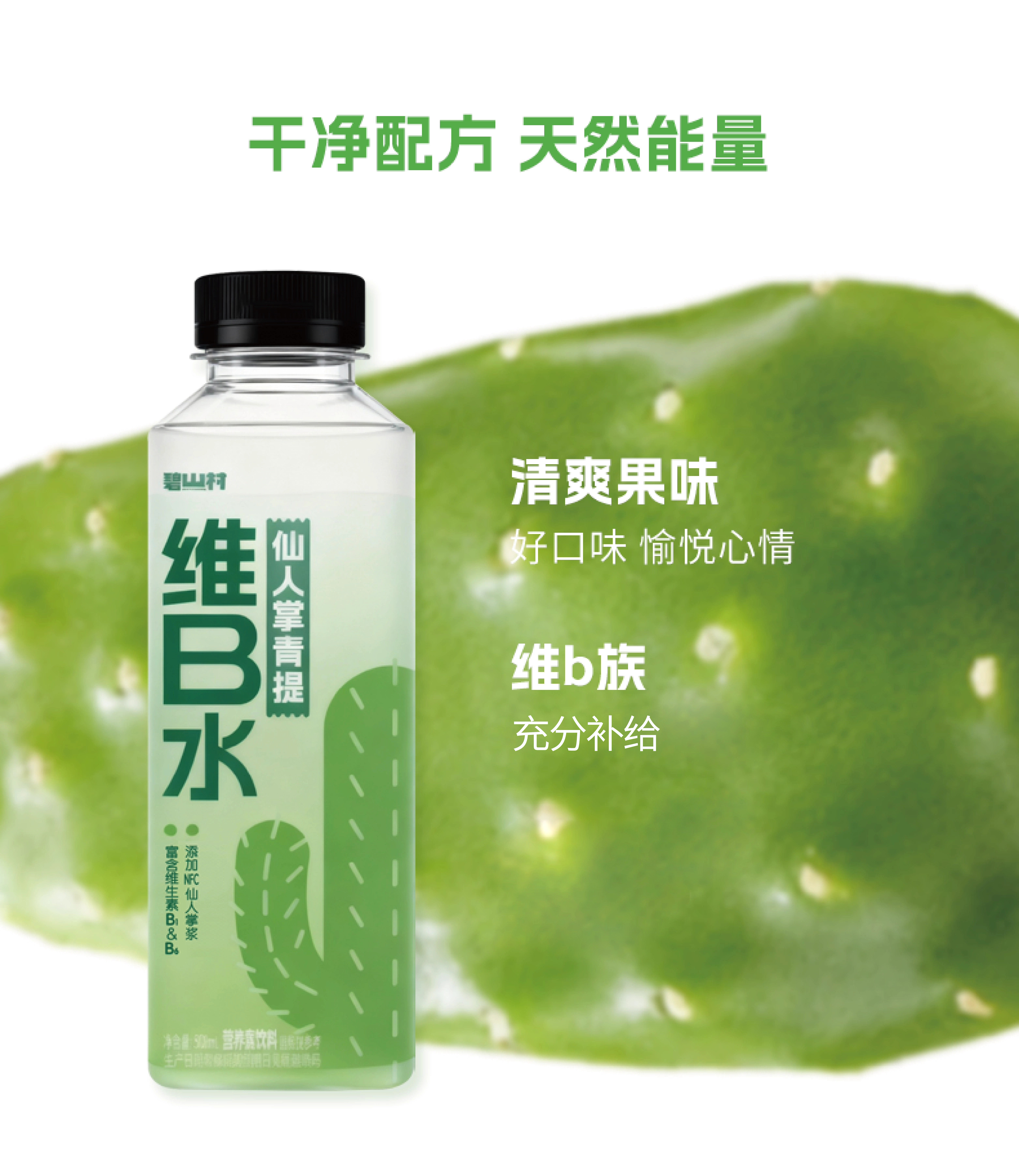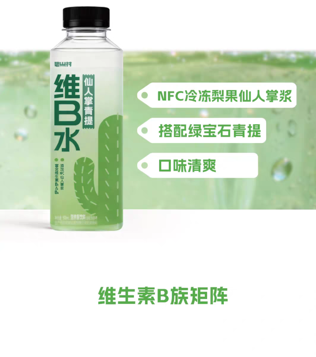 碧山村仙人掌青提维B水500ml*5瓶NFC冷冻梨果仙人掌浆清爽解腻