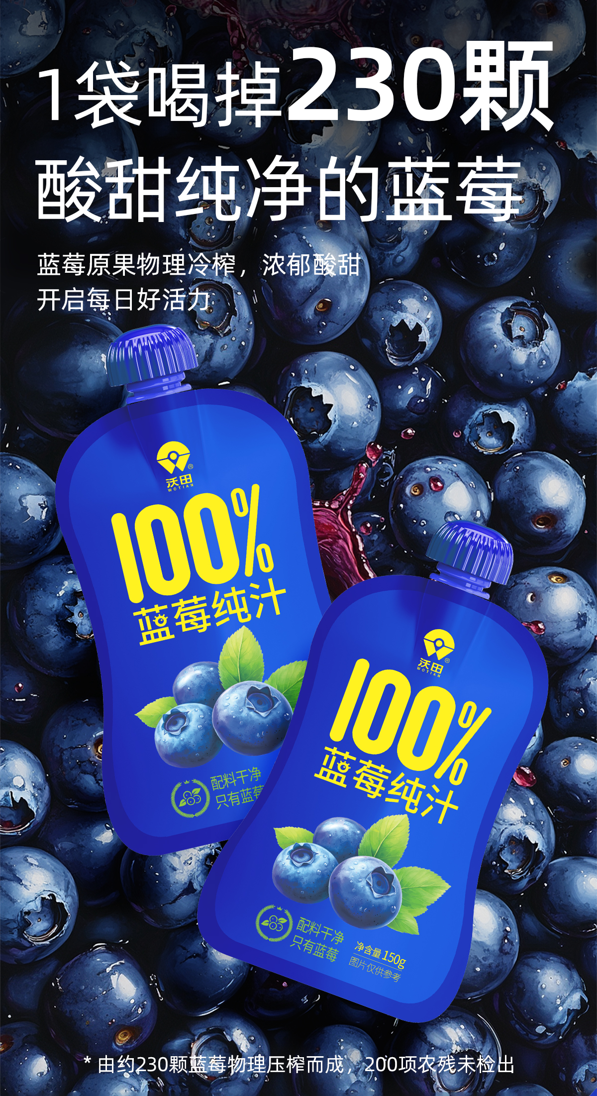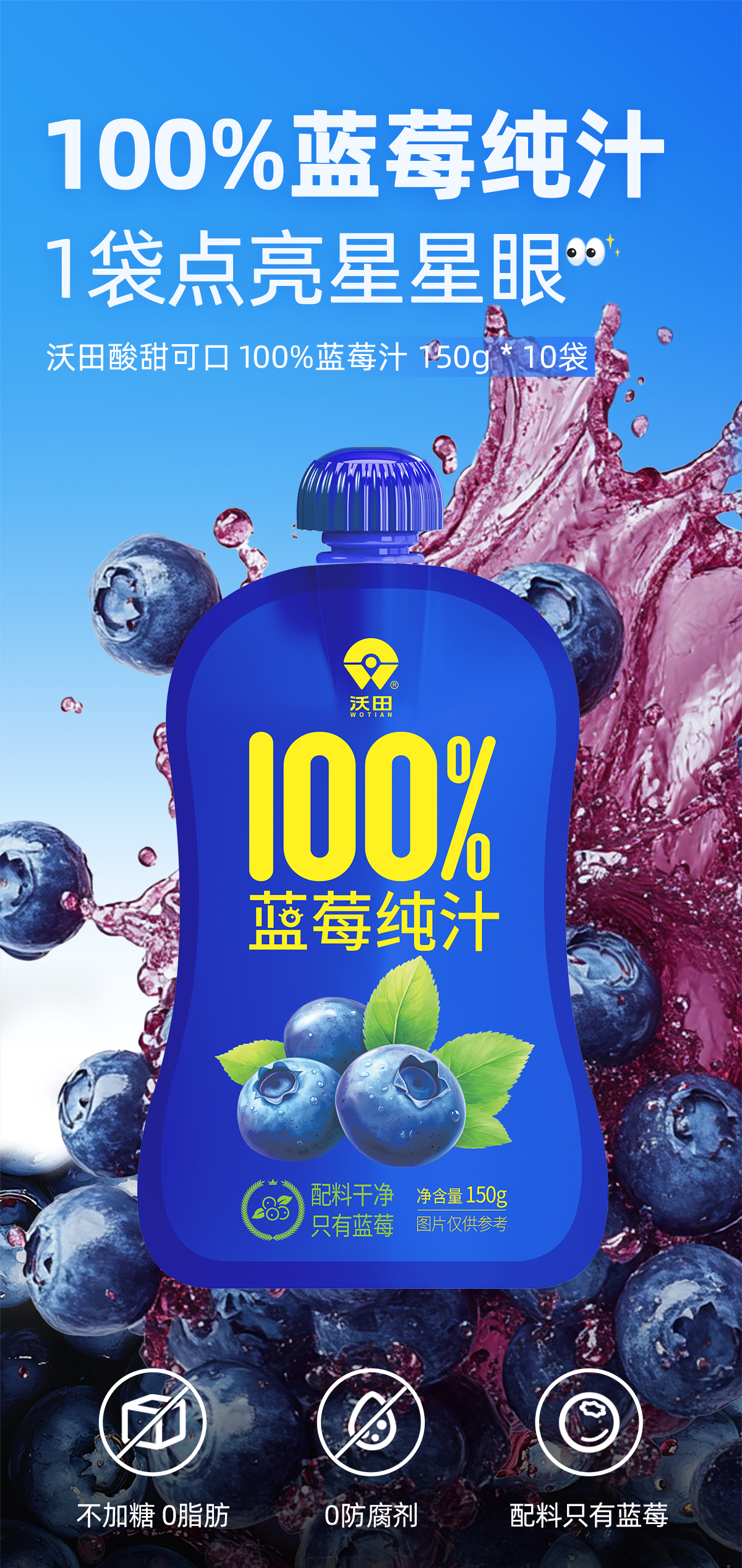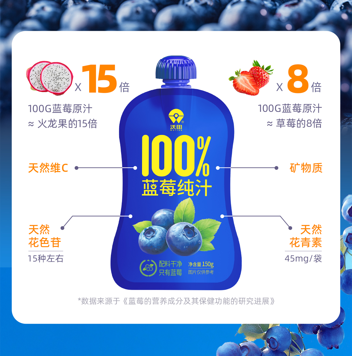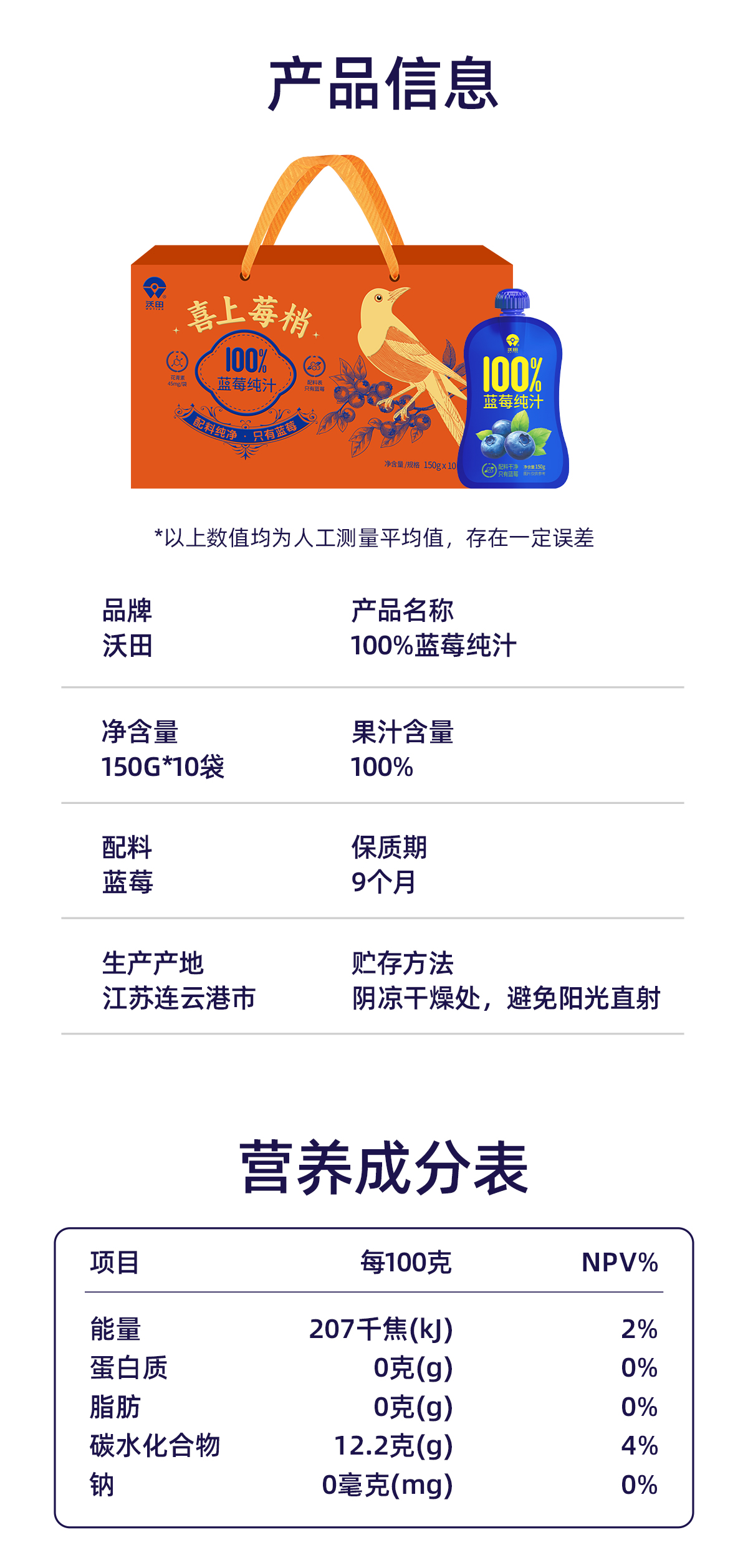 沃田喜上莓梢蓝莓纯汁150ml*10