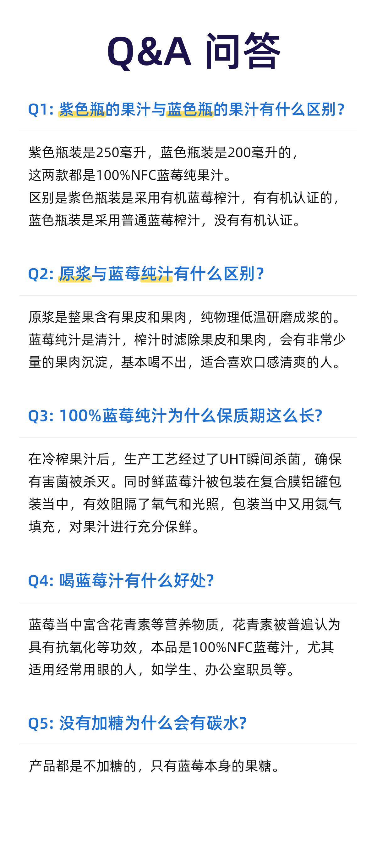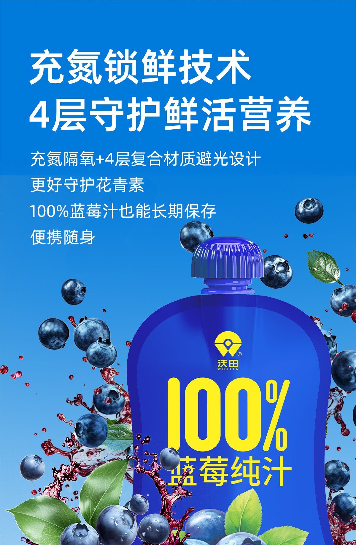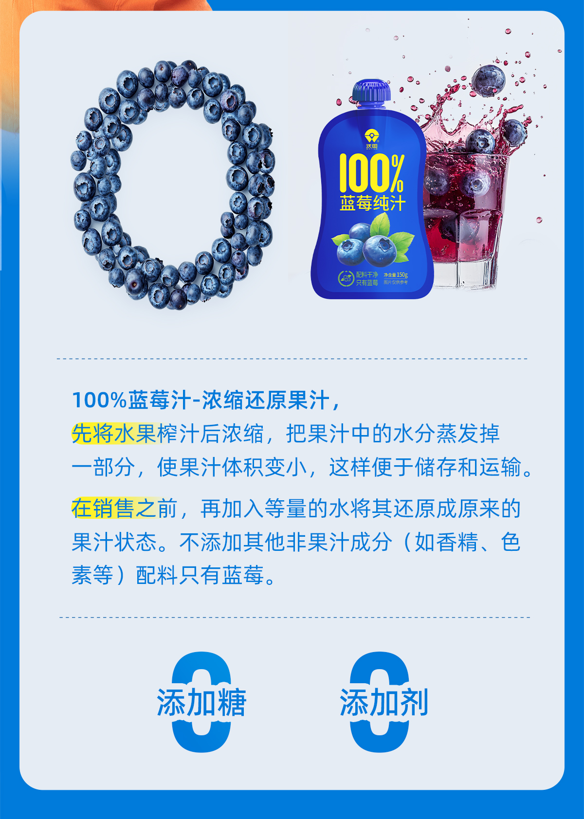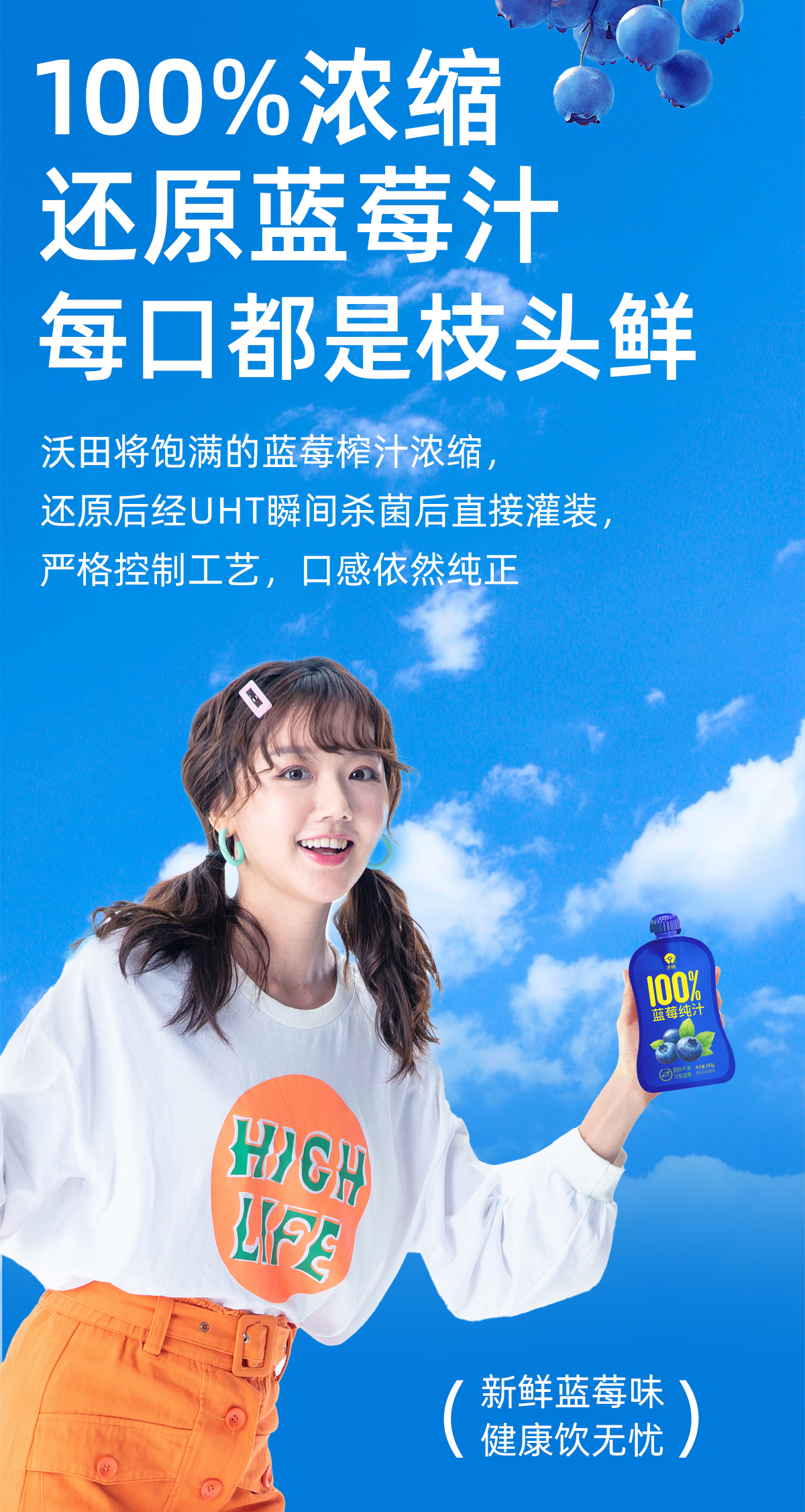 沃田喜上莓梢蓝莓纯汁150ml*10