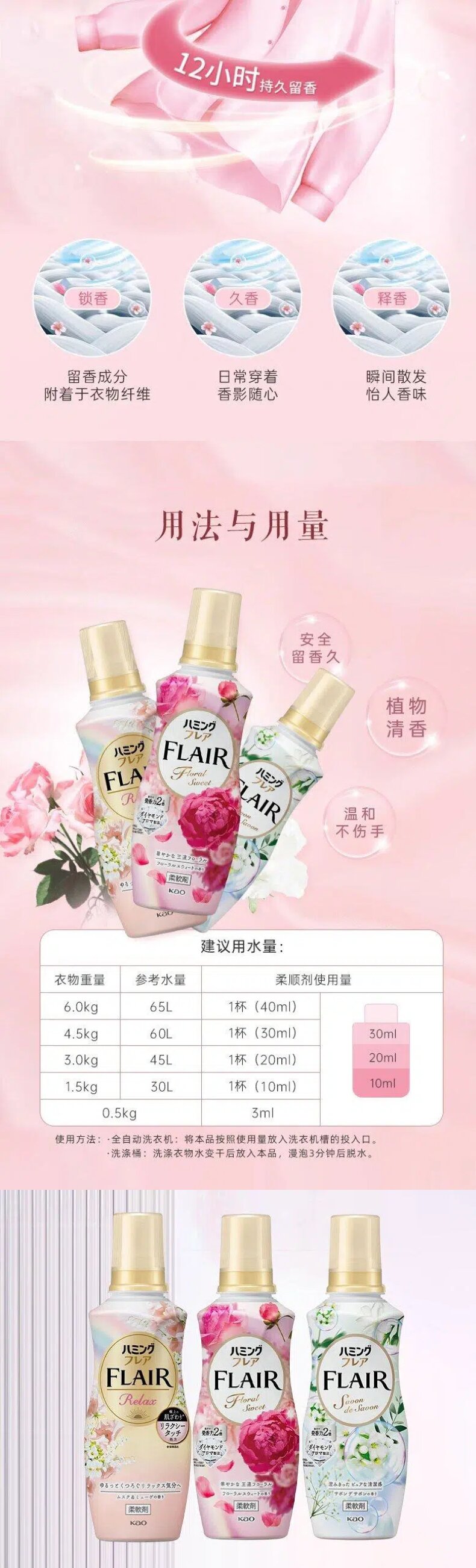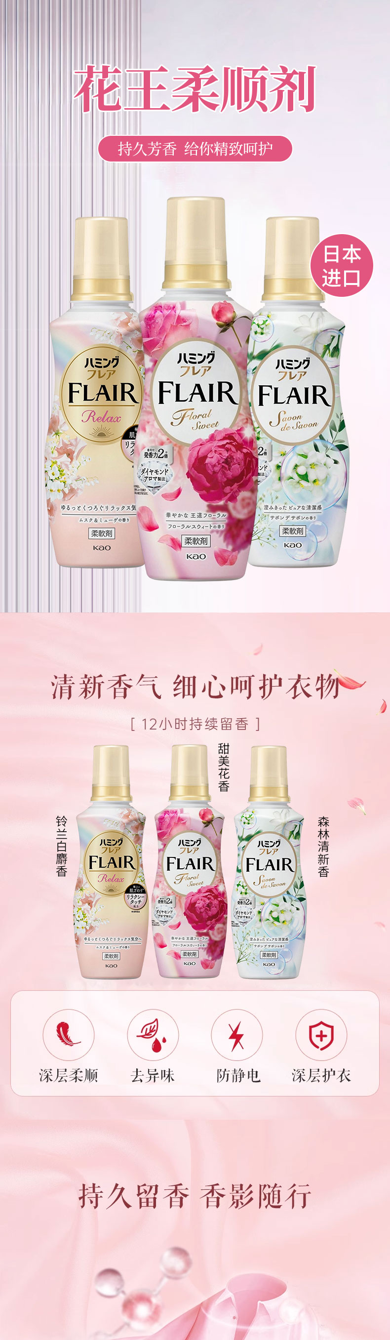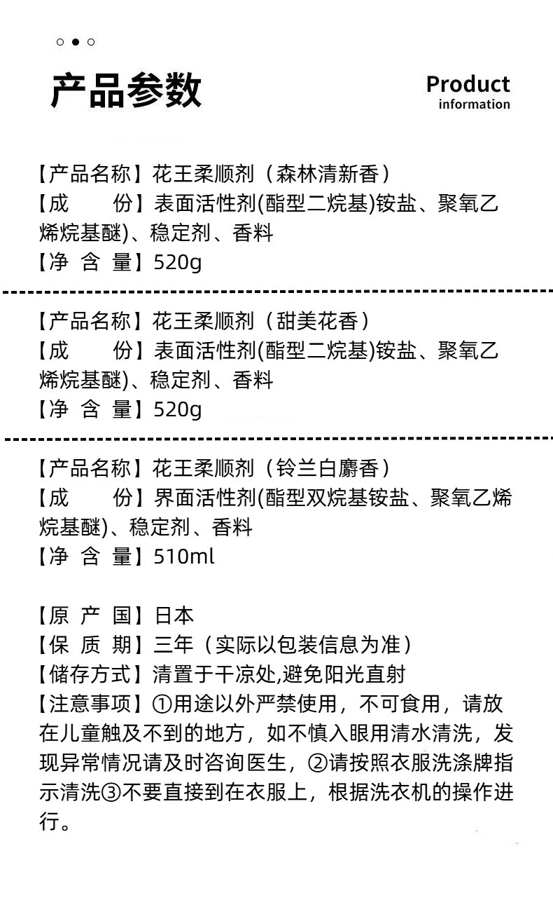 日本进口花王柔顺剂(铃兰白麝香) 510ml | (甜美花香)|(森林清新香)520g