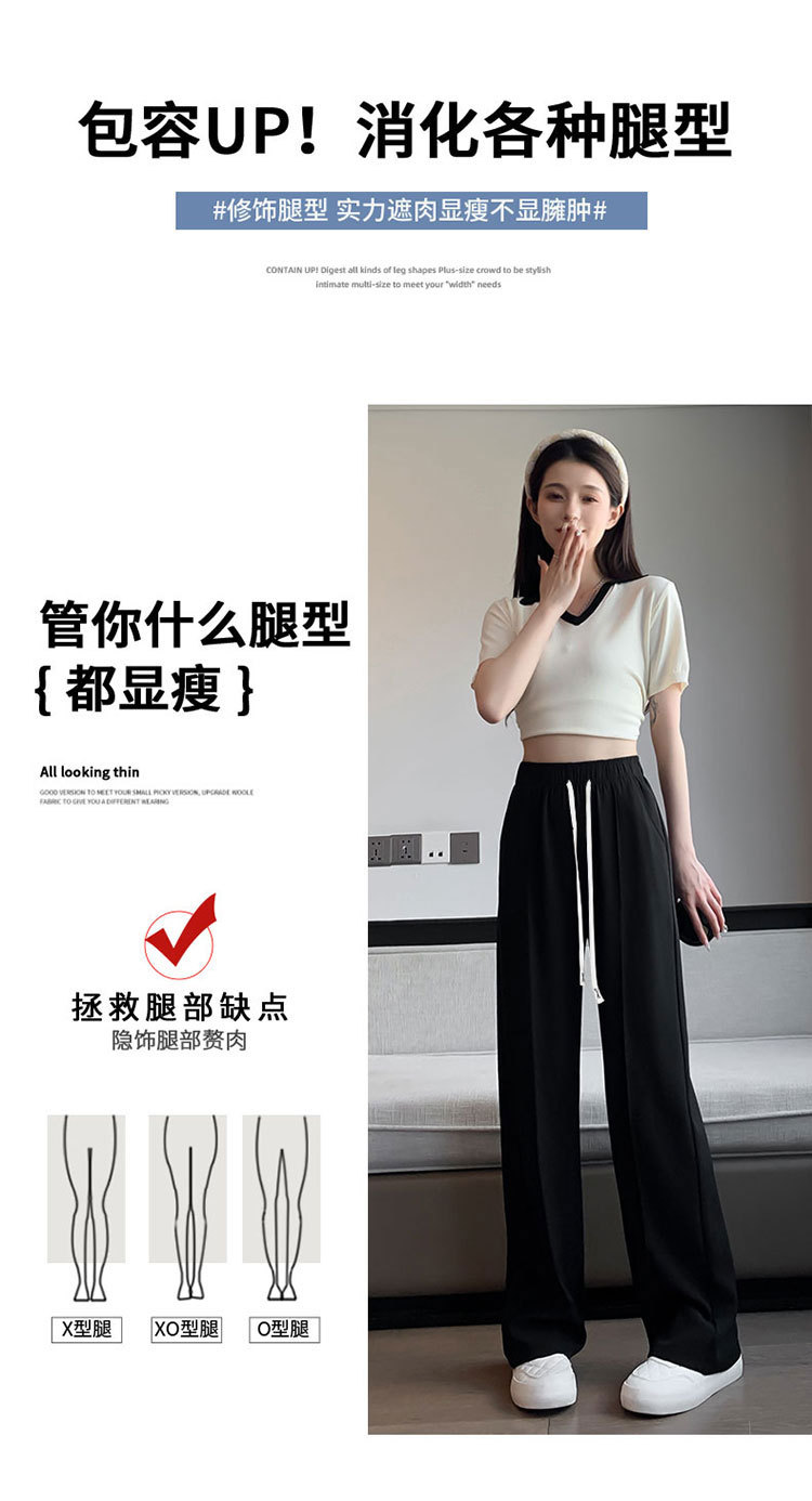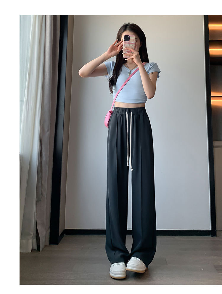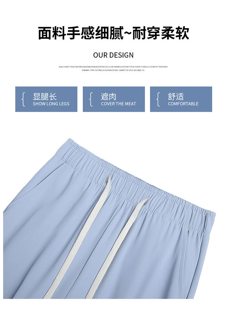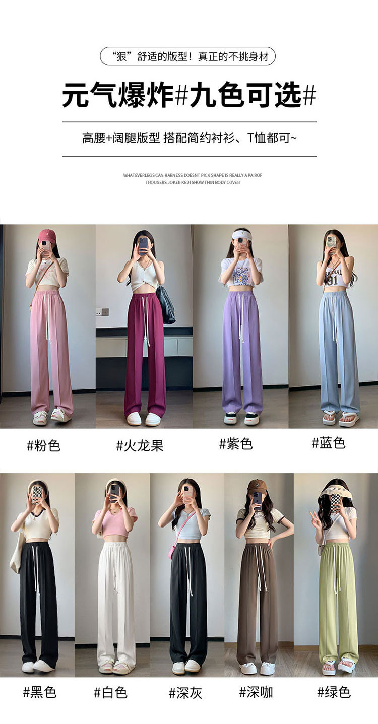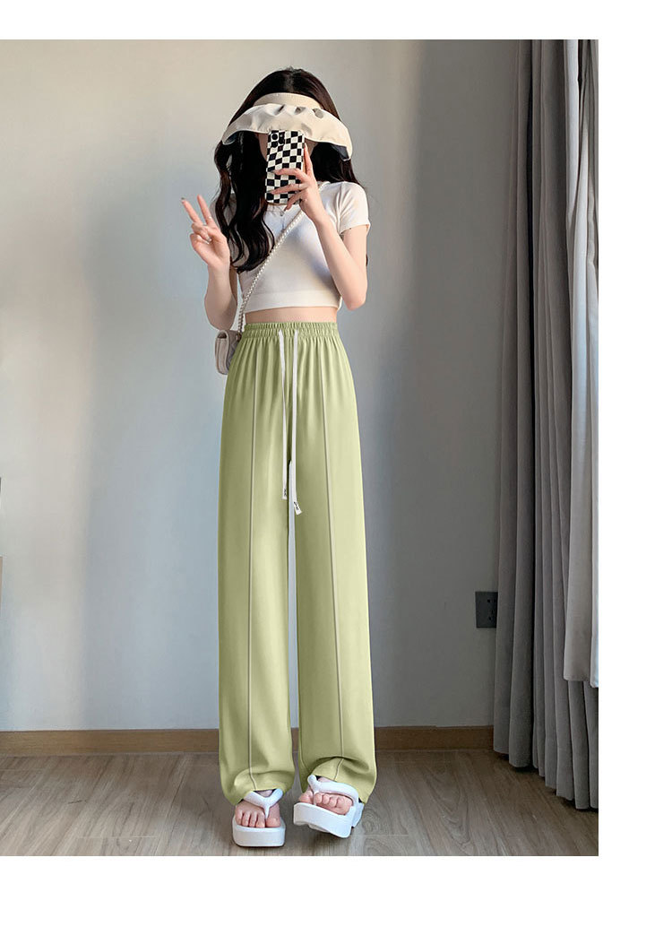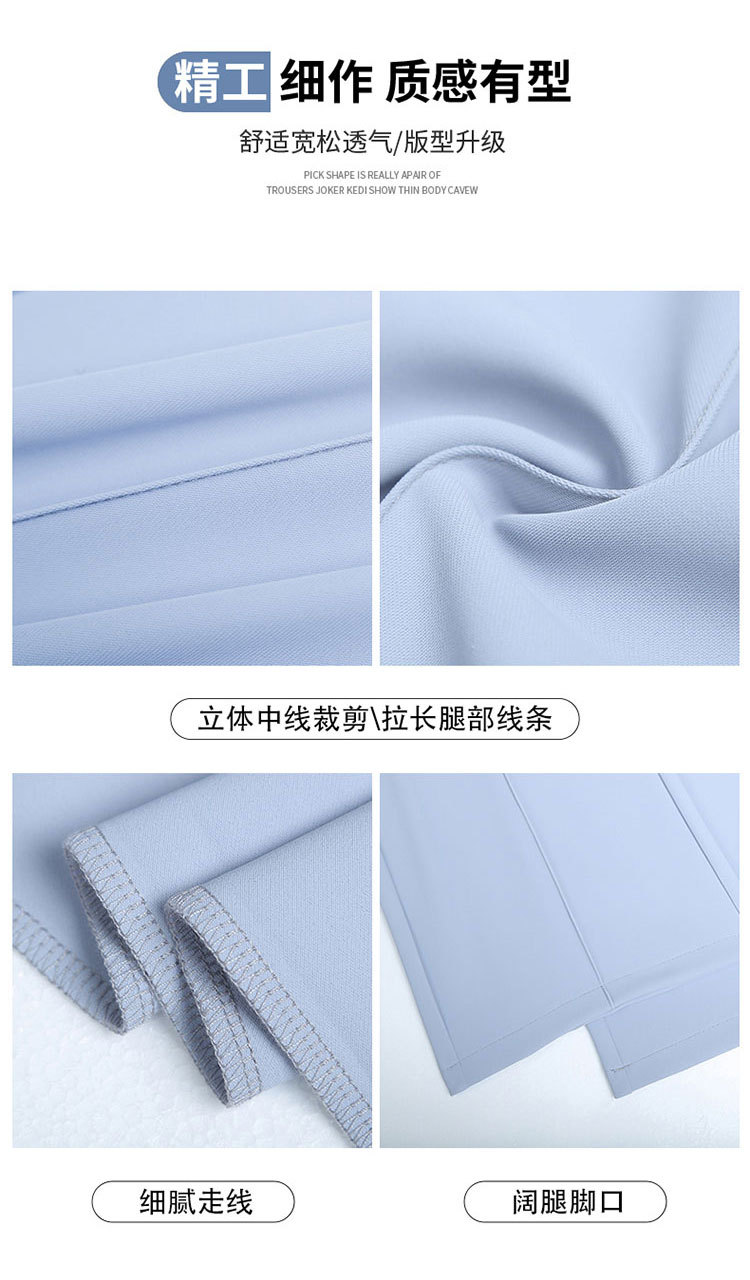 「西装面料!数色可选」抹茶绿冰丝阔腿裤女夏薄款高腰垂感雪纺凉凉裤窄版直筒休闲西装裤下装