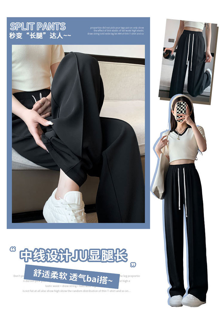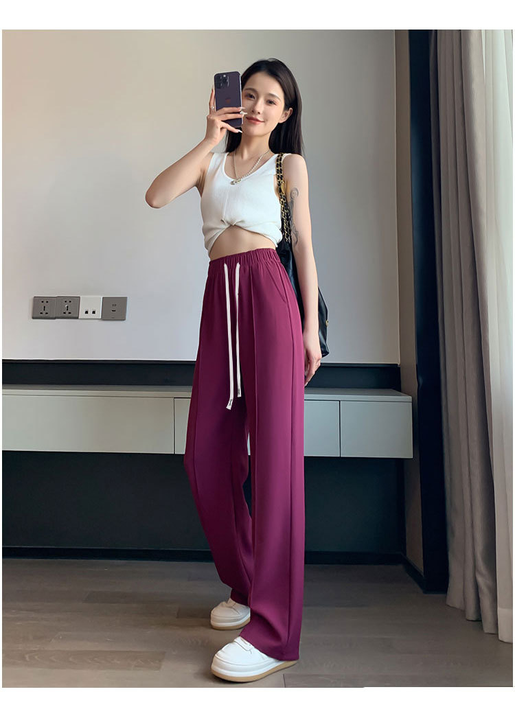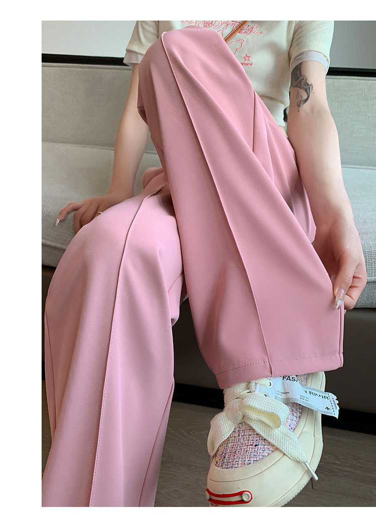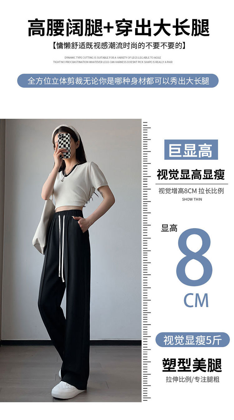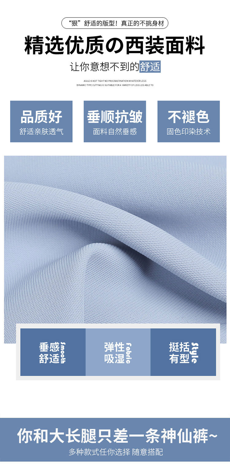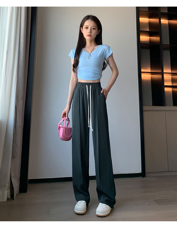 「西装面料!数色可选」抹茶绿冰丝阔腿裤女夏薄款高腰垂感雪纺凉凉裤窄版直筒休闲西装裤下装