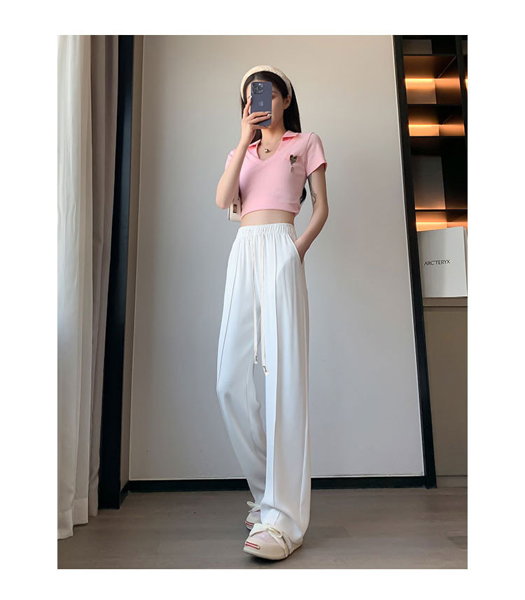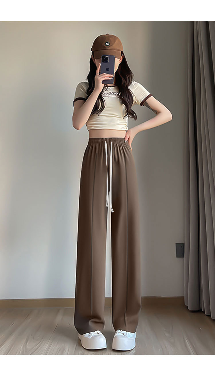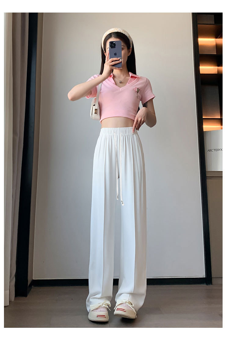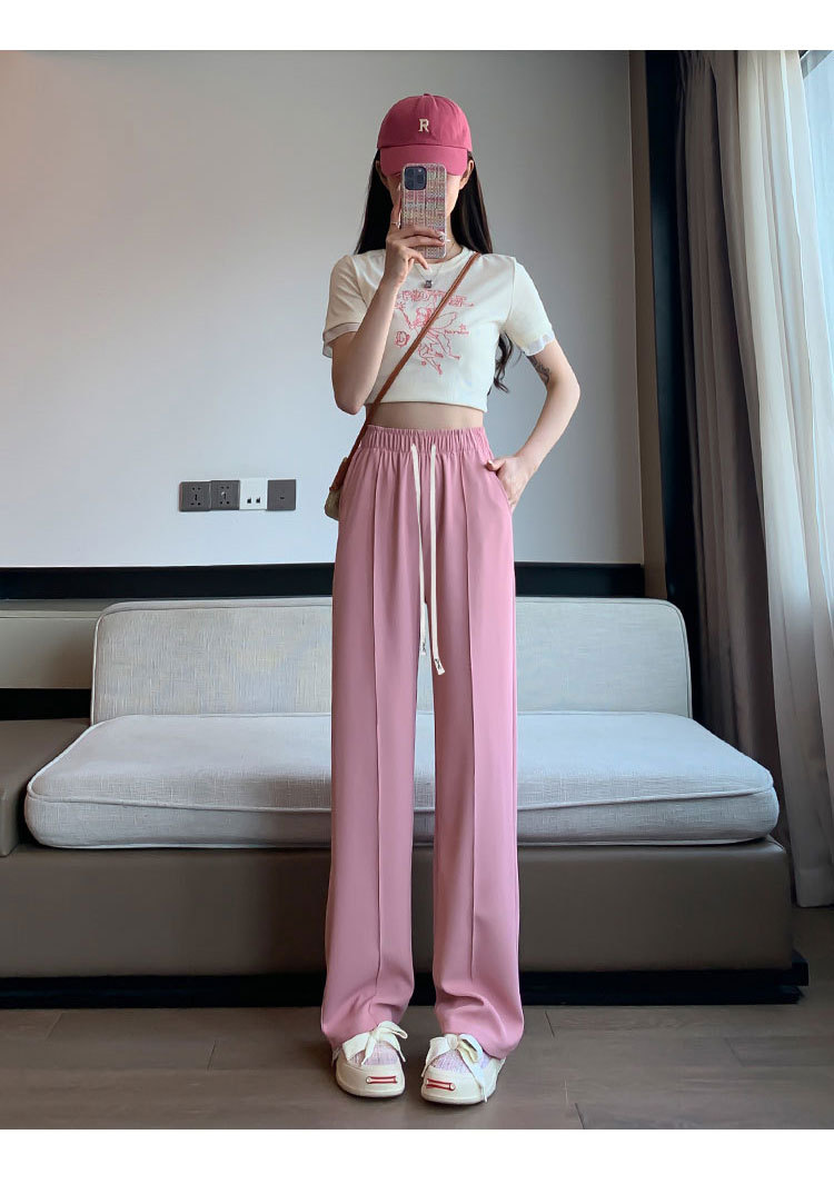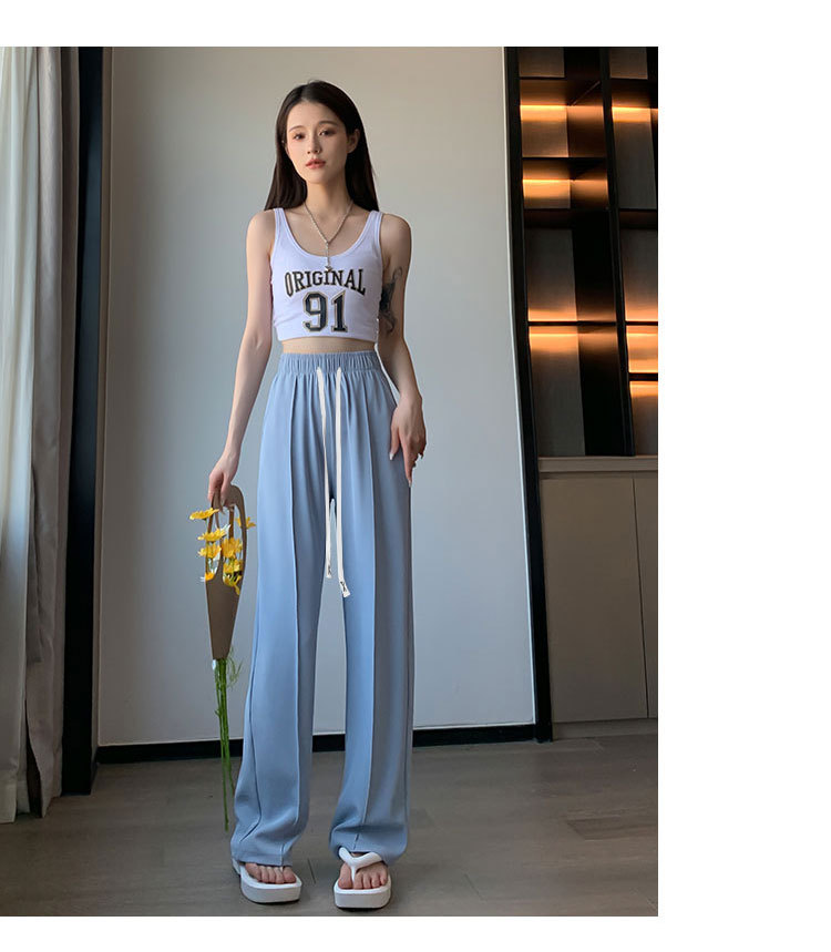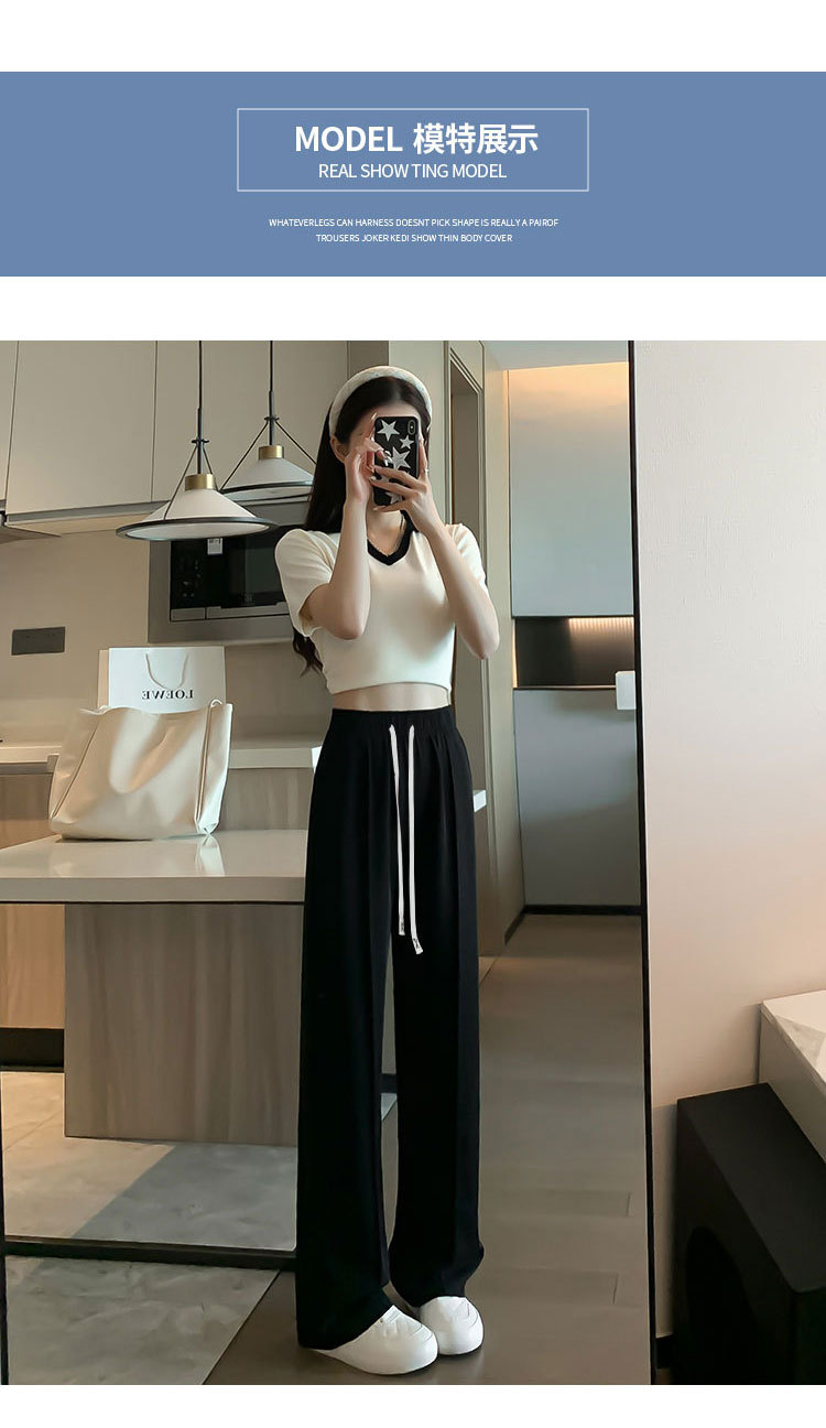 「西装面料!数色可选」抹茶绿冰丝阔腿裤女夏薄款高腰垂感雪纺凉凉裤窄版直筒休闲西装裤下装