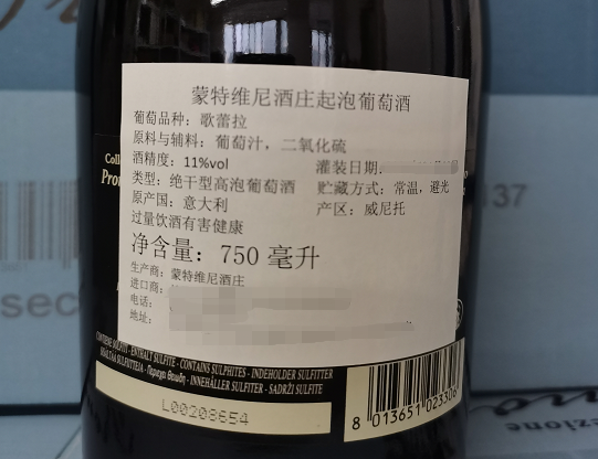 【白瓶】DOC蒙特维尼 普罗塞克prosecco起泡酒 极干型11% 750ml 意大利原瓶进口