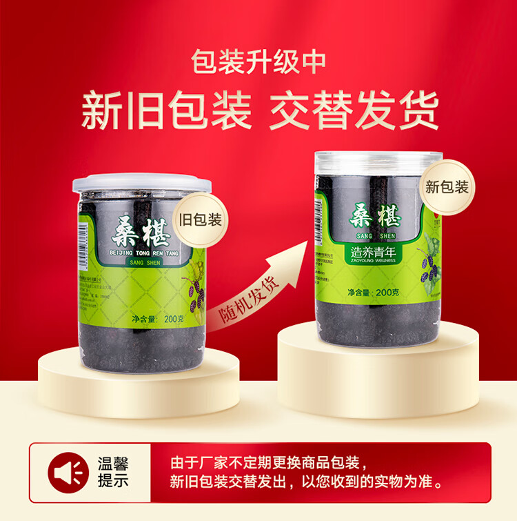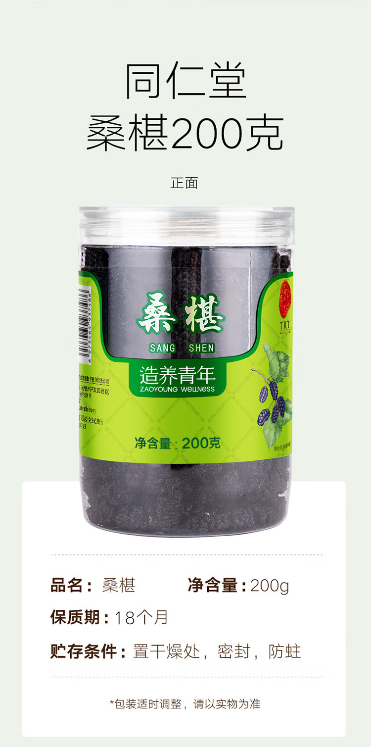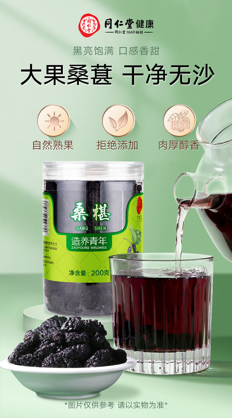 北京同仁堂桑椹桑葚干 自营 手工采摘精选无沙黑桑葚200g 即食桑椹茶养生茶 可搭蜂蜜枸杞红枣(YS)