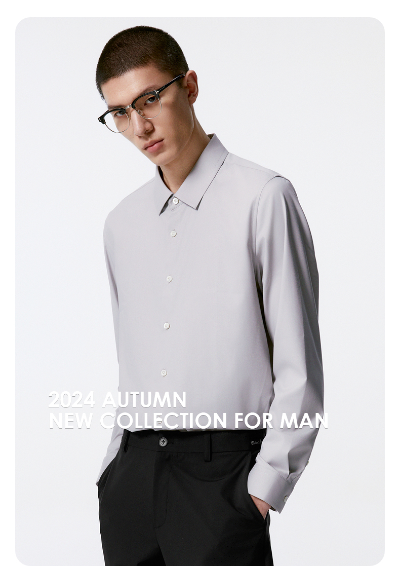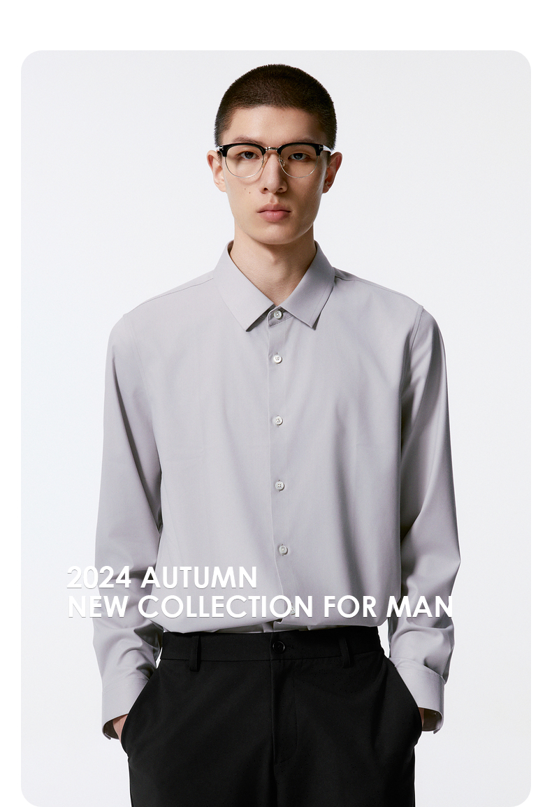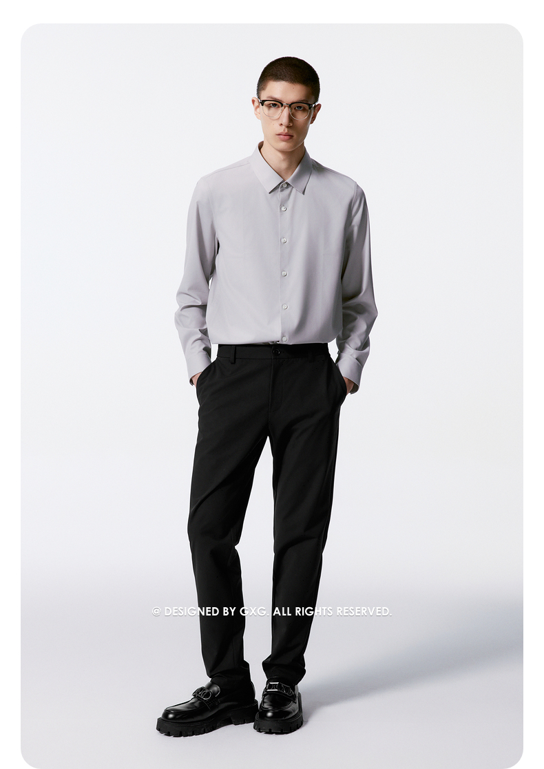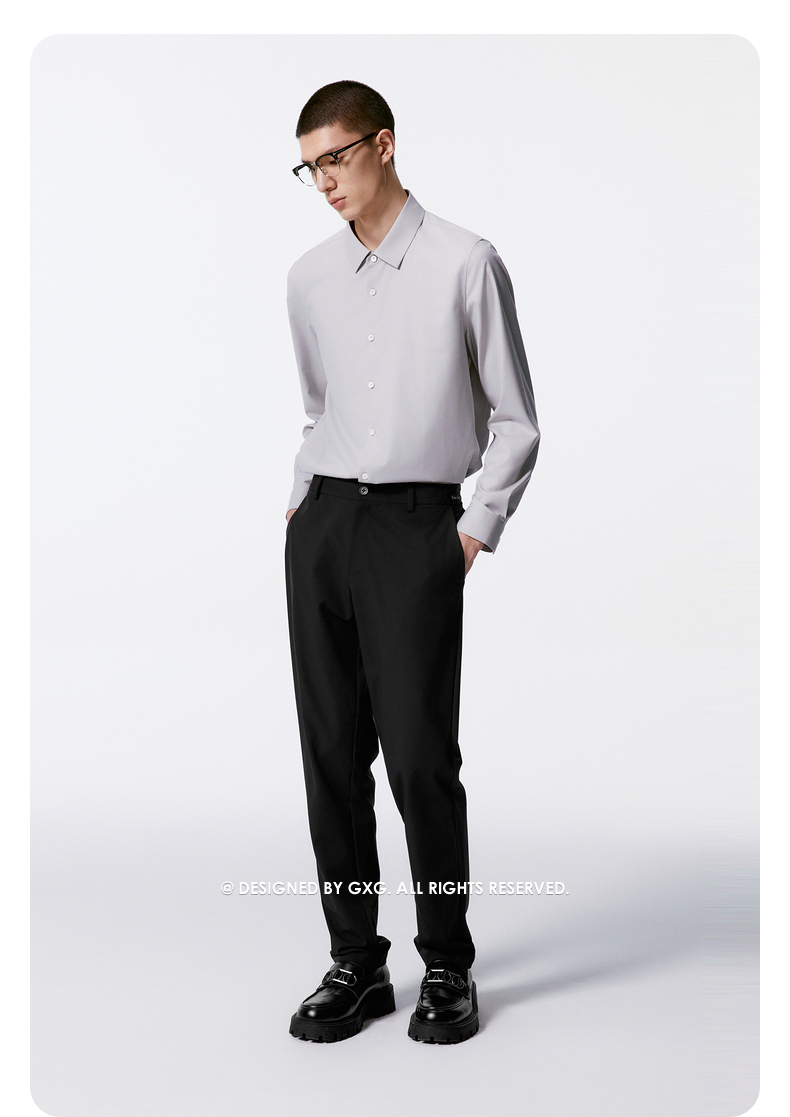 GXG男装 浅灰色基础通勤翻领长袖衬衫男士24年秋季热卖G24X033038