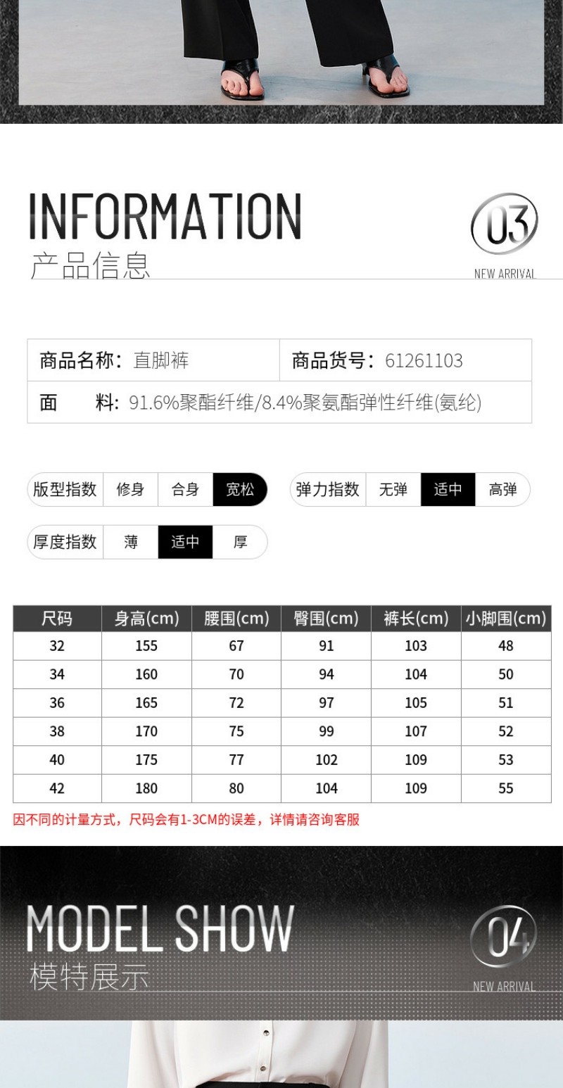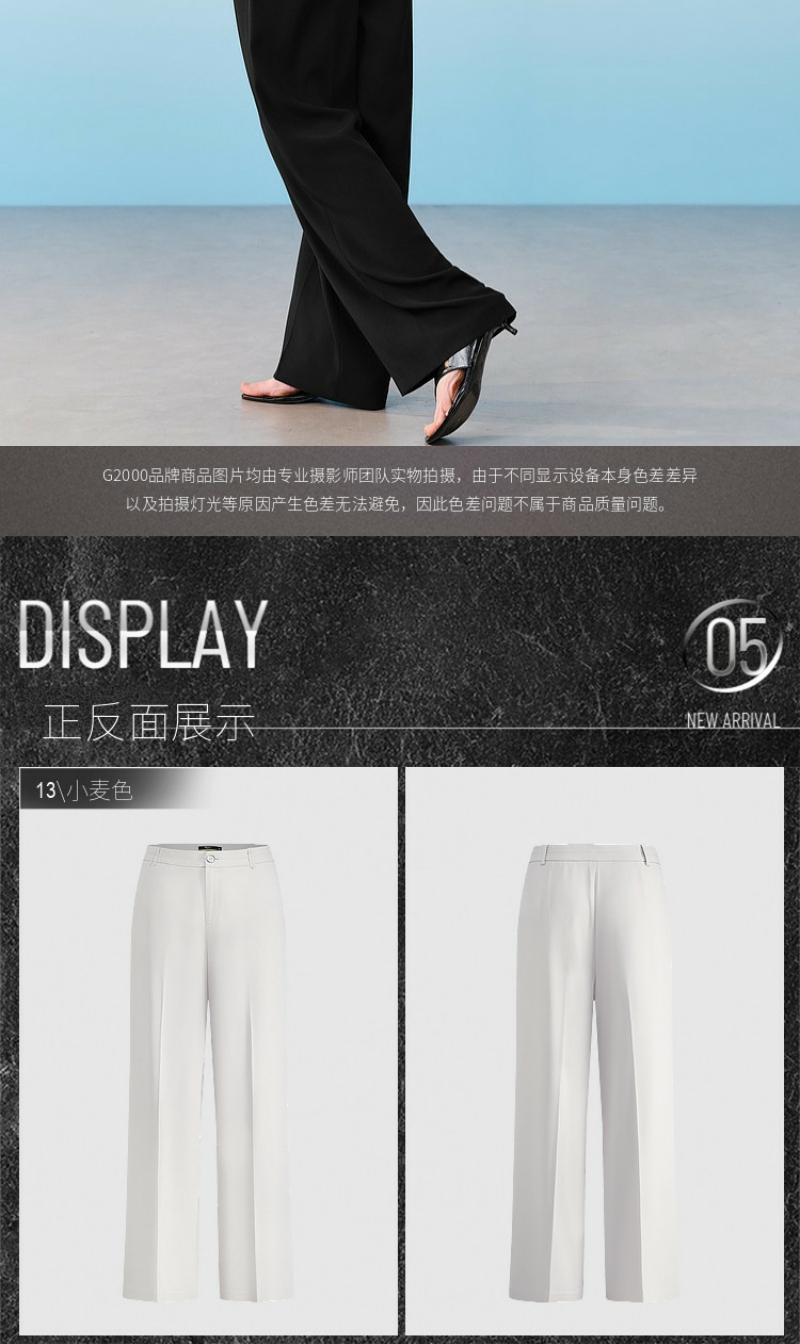 G2000女装SS26商场新款【直筒裤/防紫外线】弹性百搭休闲裤61261103