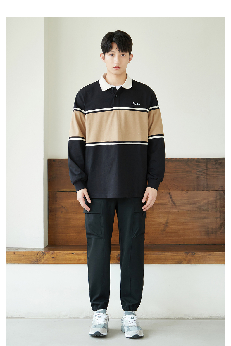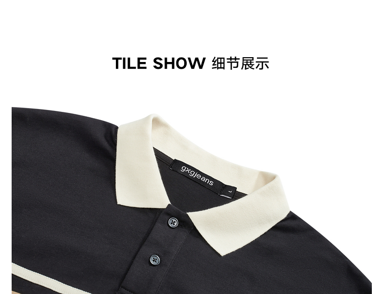 gxgjeans男装秋季撞色翻领上衣纯棉刺绣polo领卫衣男翻领长袖T恤