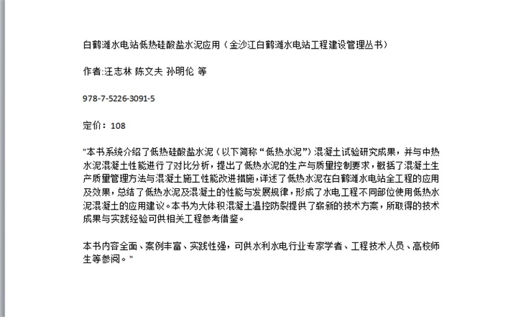 白鹤滩水电站低热硅酸盐水泥应用(金沙江白鹤滩水电站工程建设管理丛书)