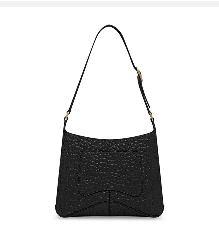 BALENCIAGA 巴黎世家 女士小号闪亮柔软小牛皮流浪包鳄鱼压纹斜挎单肩包 黑色 695589 2108X 1000