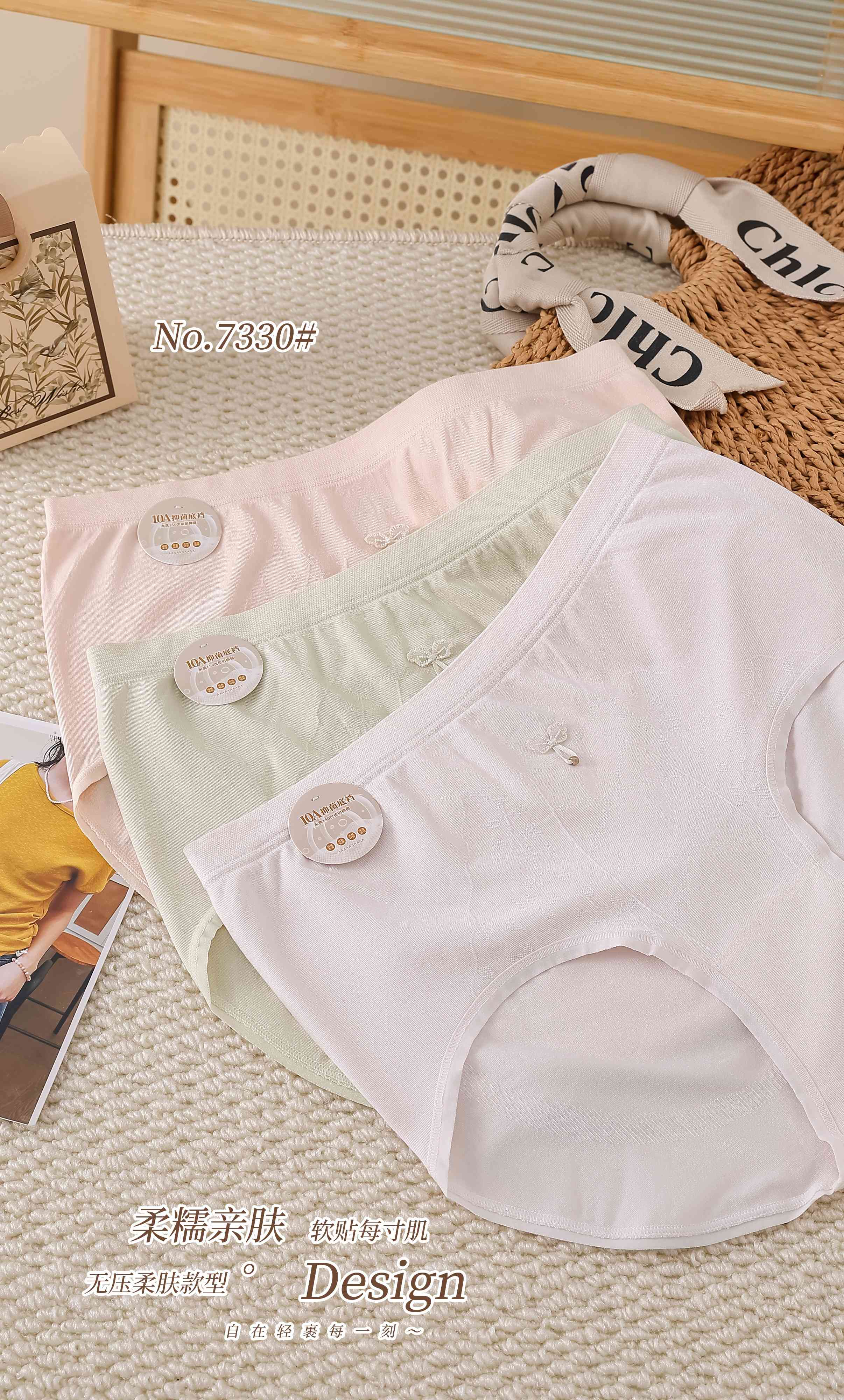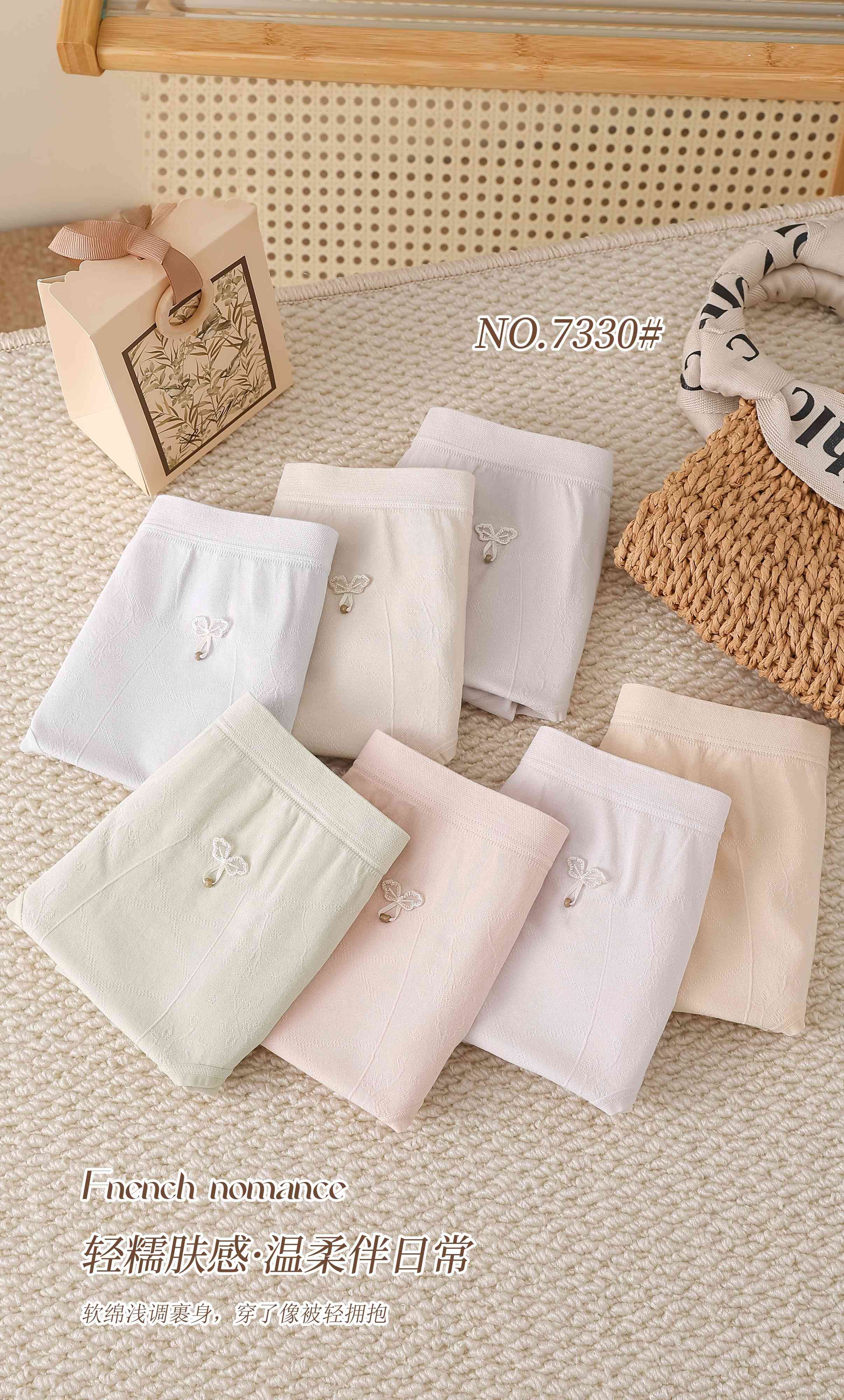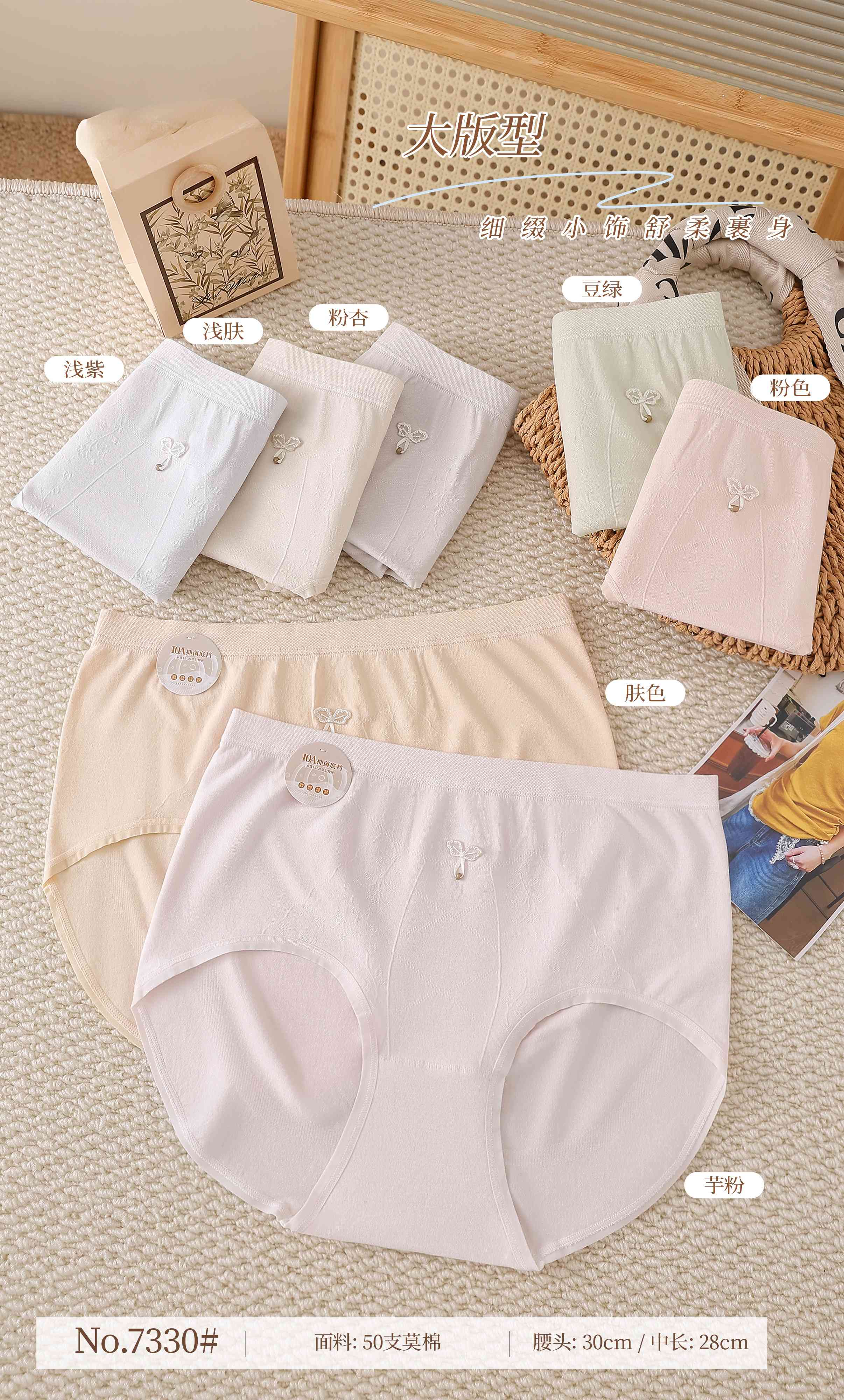 女士加肥加大内裤丰满裤蝴蝶结吊坠少女可爱超大版型三角裤7330