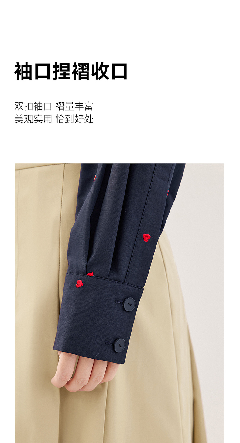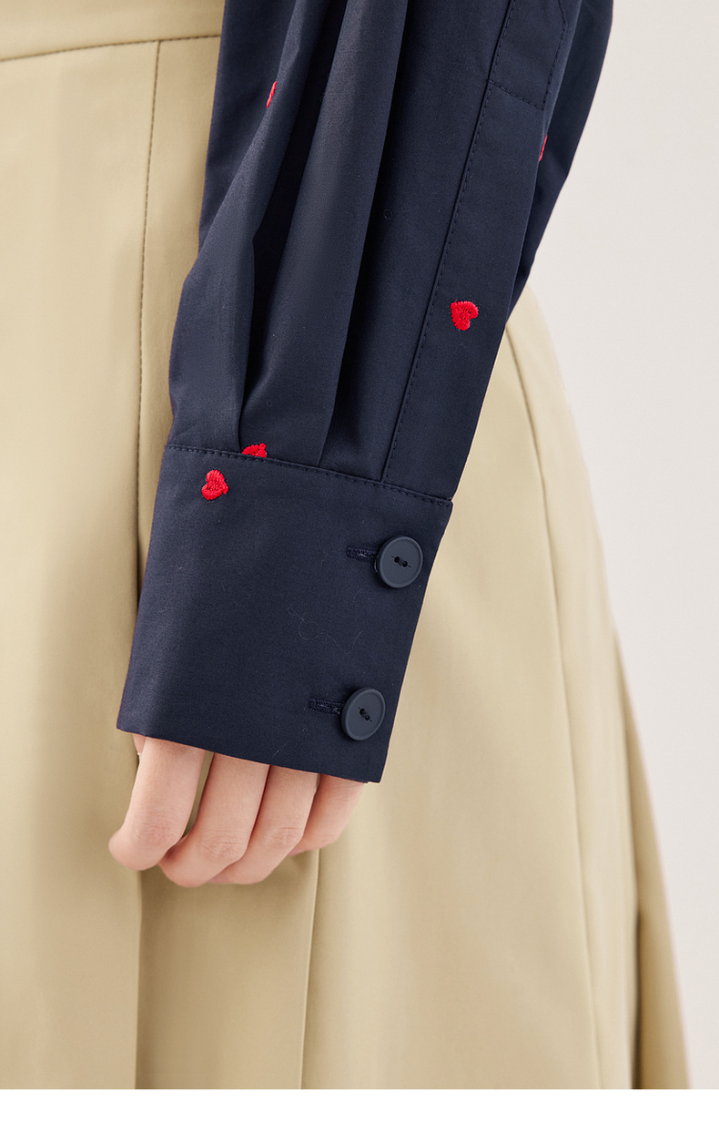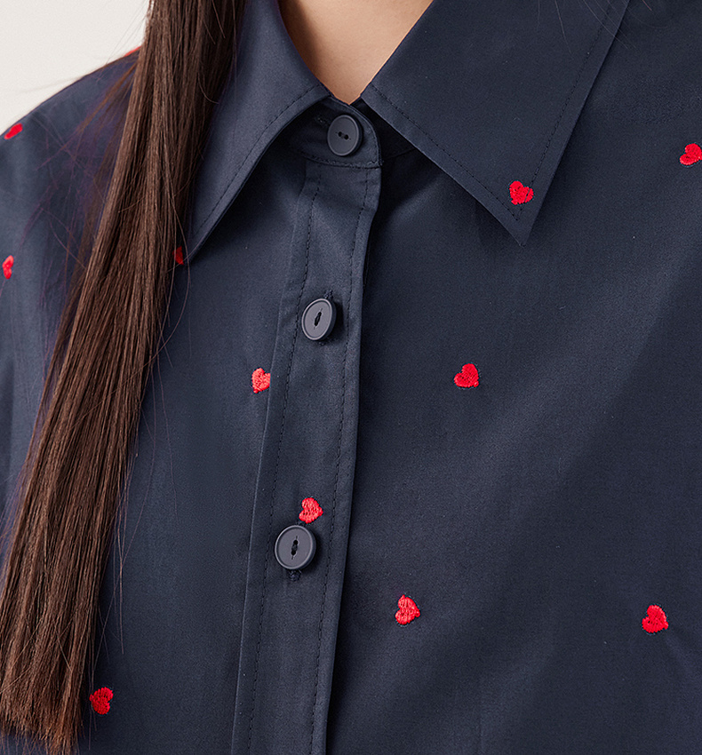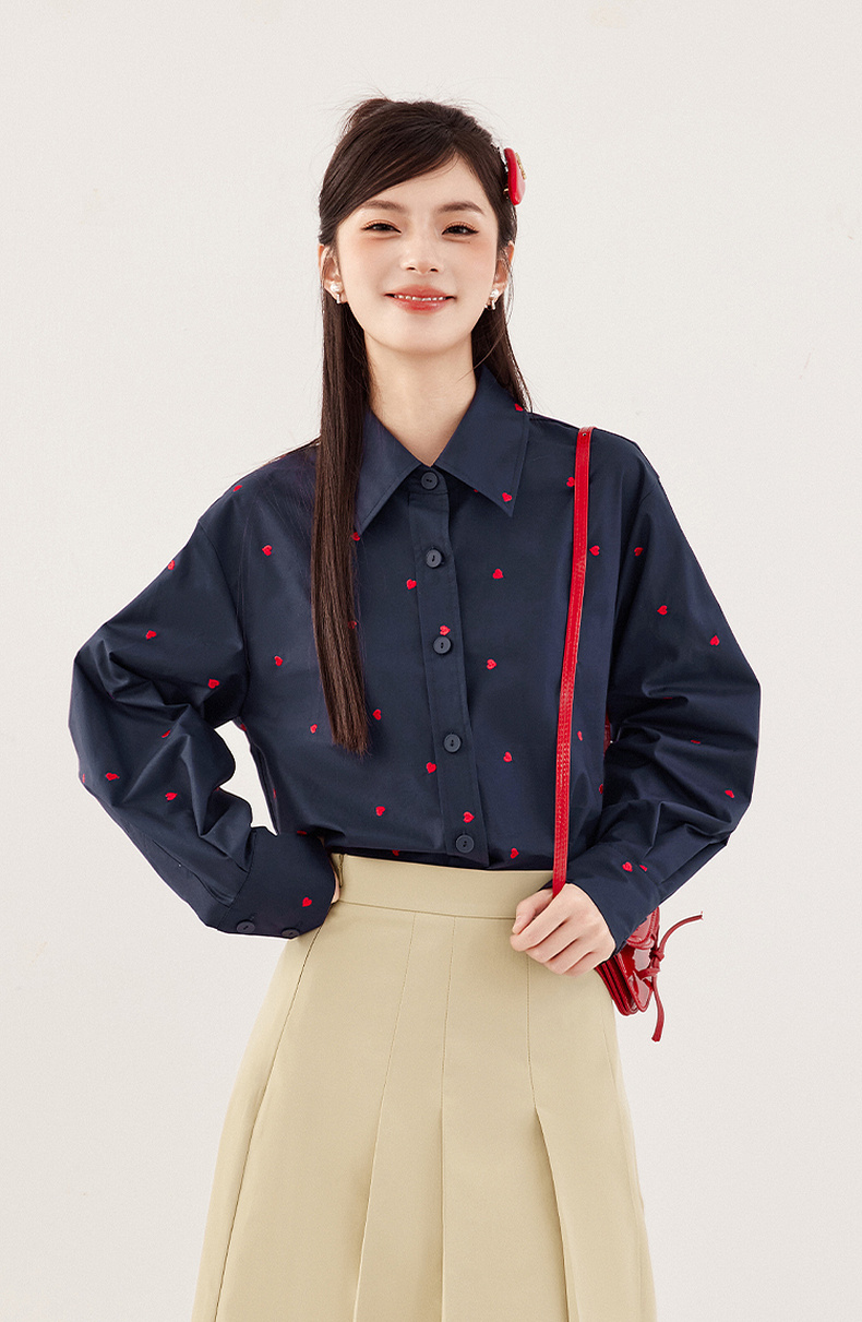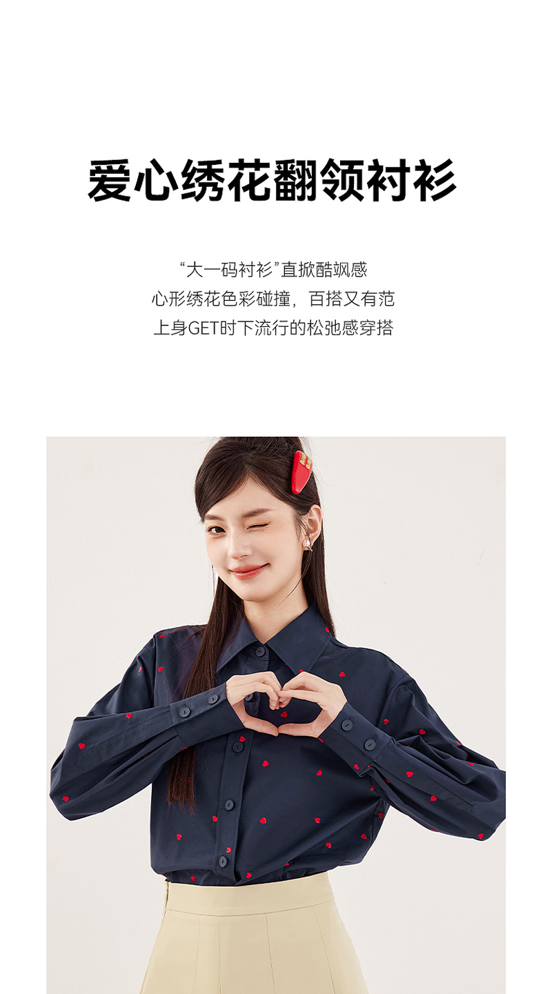 【严选】诗凡黎重工爱心绣花oversize衬衫2024秋新款慵懒宽松设计感上衣女7F7320061