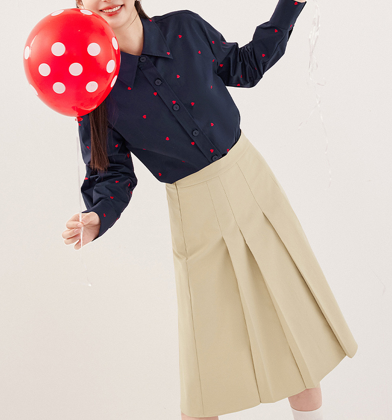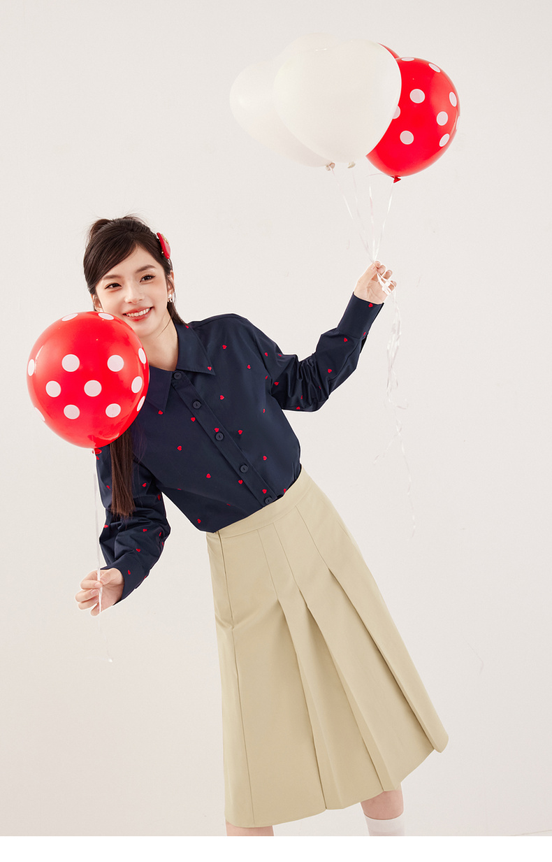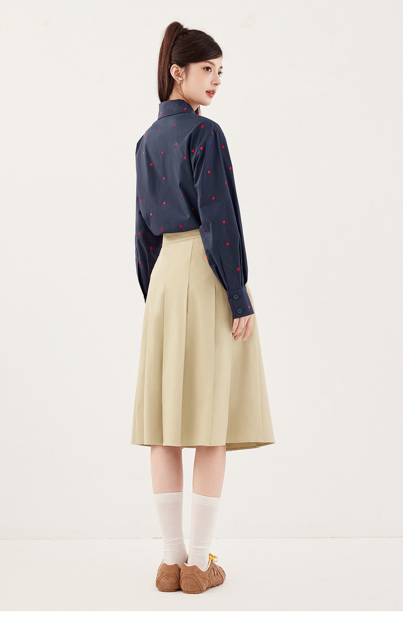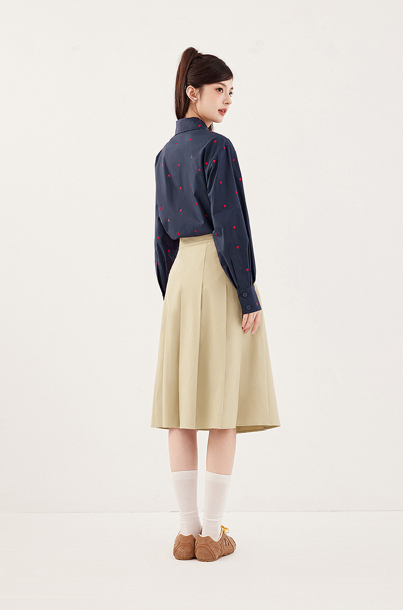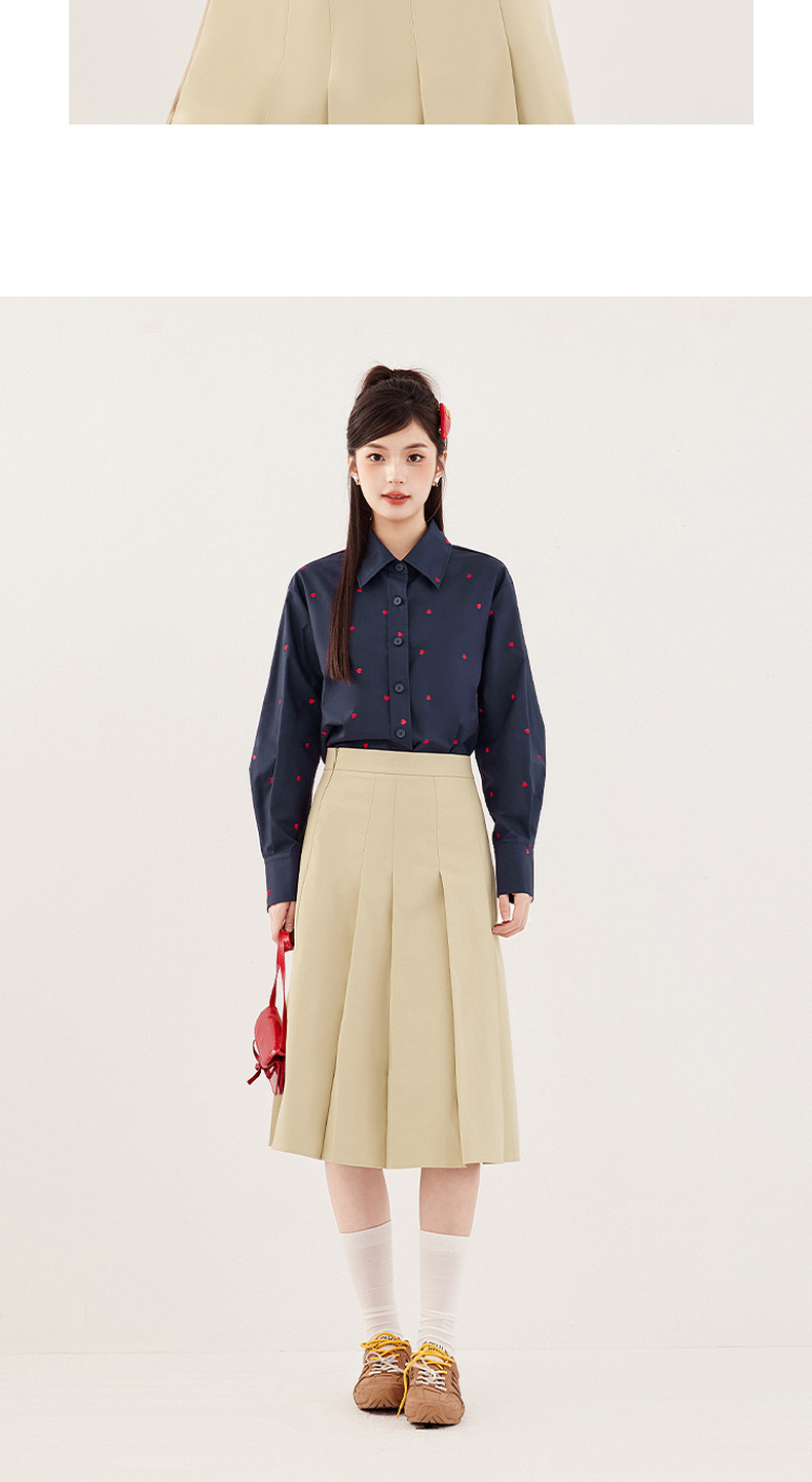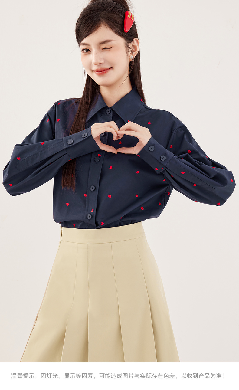 【严选】诗凡黎重工爱心绣花oversize衬衫2024秋新款慵懒宽松设计感上衣女7F7320061