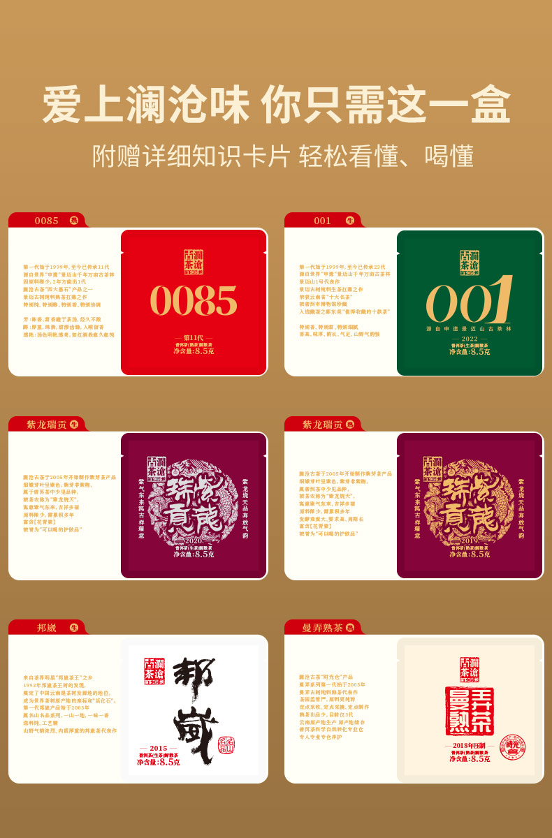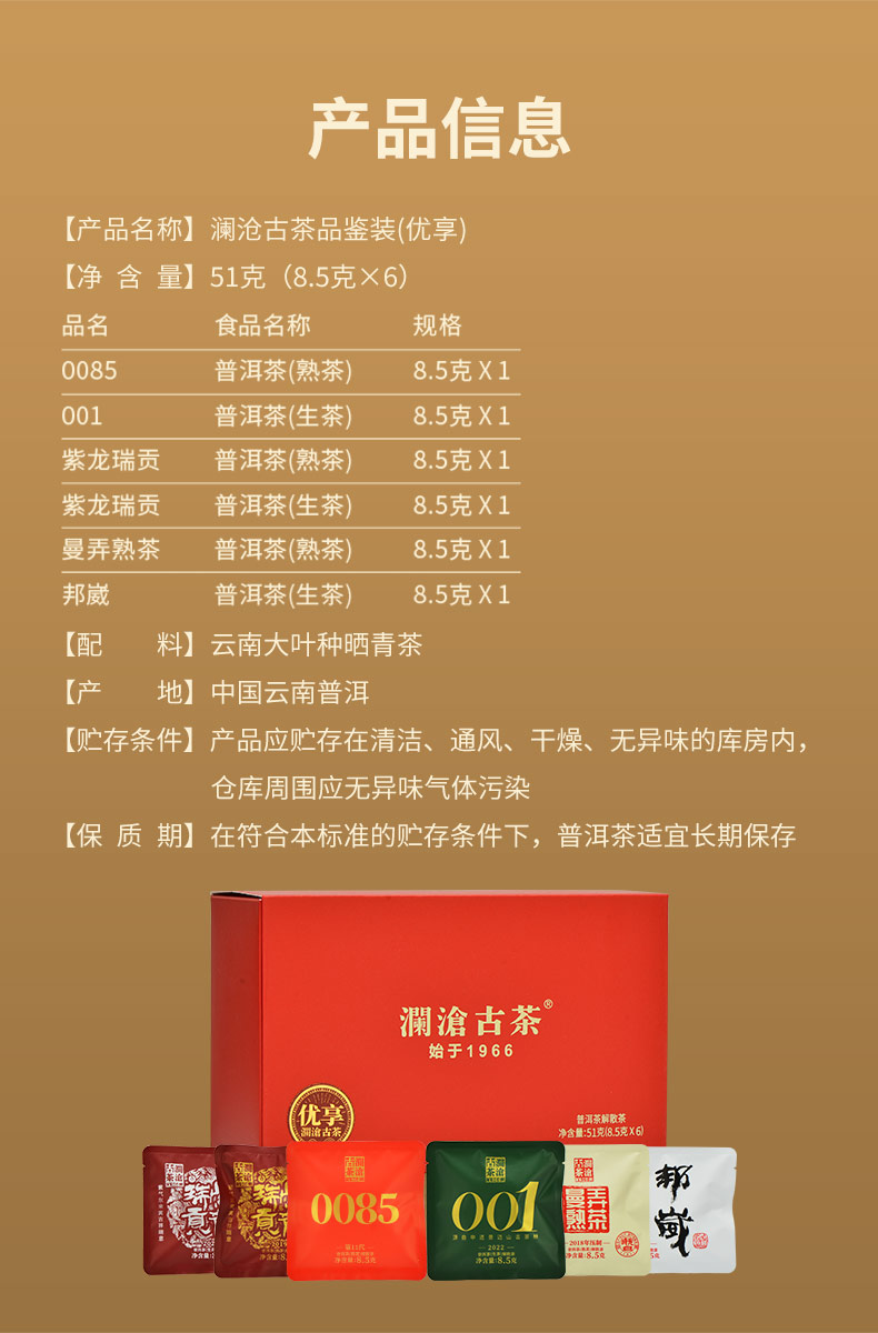 (东莞食博会专属)澜沧古茶普洱茶生茶熟茶组合品鉴装-优享组合8.5g*6