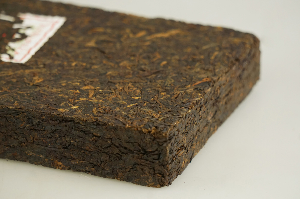 成品砖型端正,压制紧实,条索紧结、乌润,带金毫