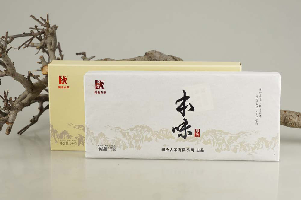 本味厚砖精选 2015 年-2016年乔木老树茶为原料,适度发酵,调配 4-5年精心存养的古树熟茶老料,高温蒸压而成。