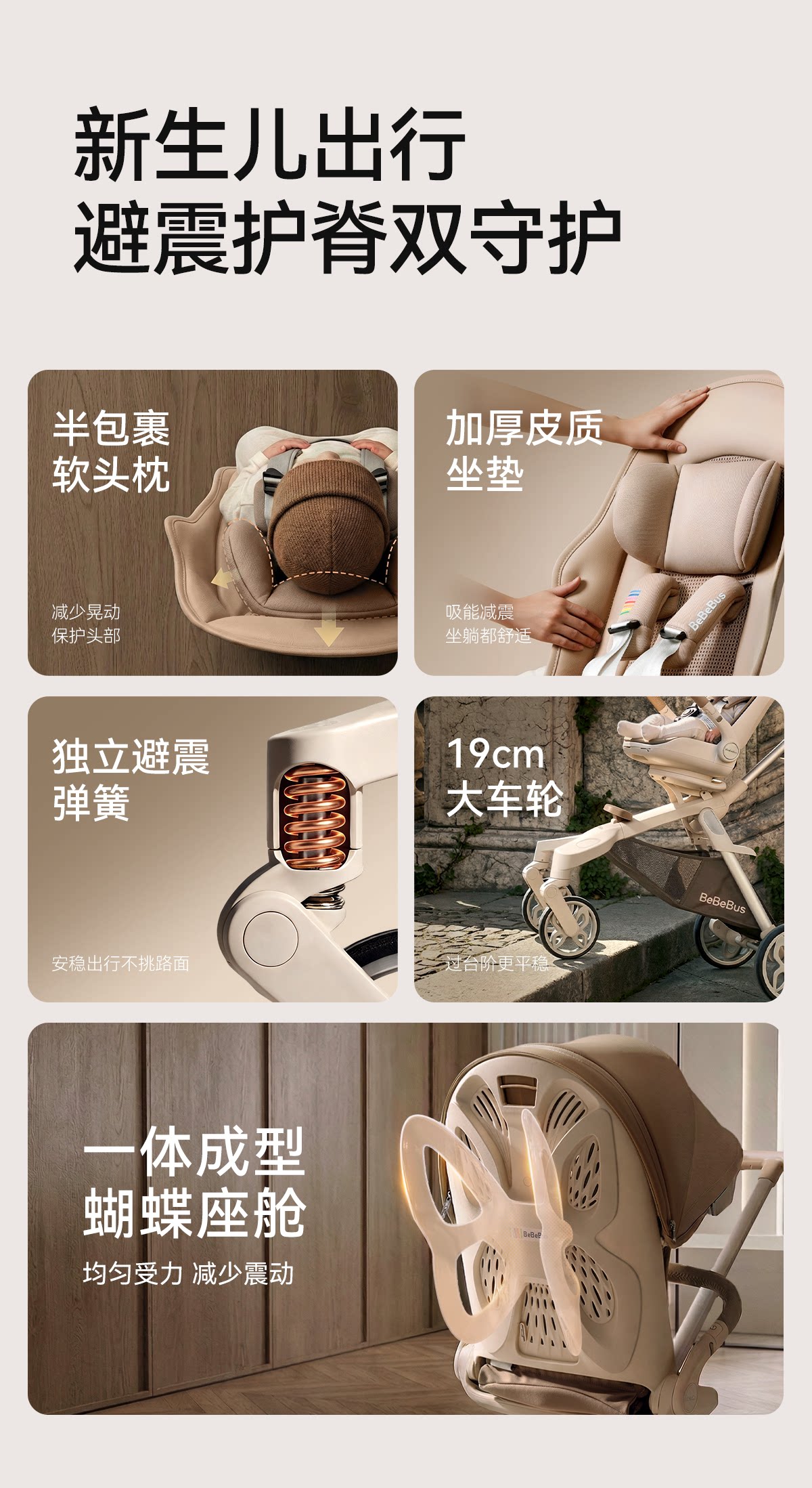 BeBeBus蝴蝶遛娃神器pro轻便折叠双向可坐可躺高景观溜娃婴儿推车
