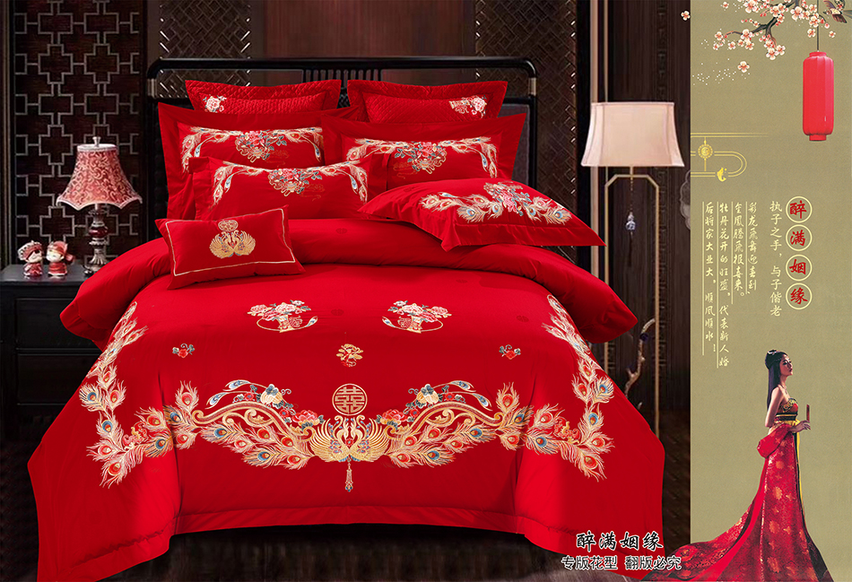 醉满姻缘四件套 新婚床上用品 大红床单被罩 喜被