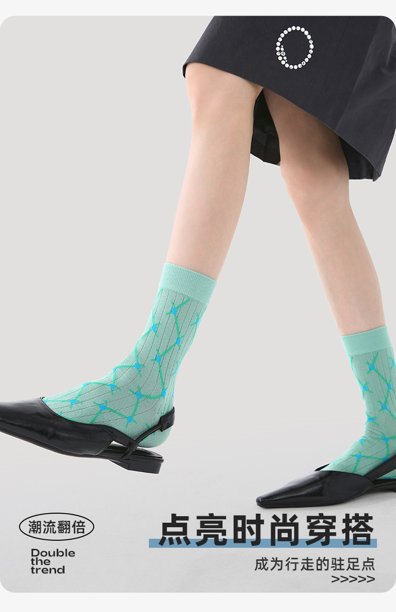 【云优选】Renaissance春夏季新款绿色菱格中筒袜薄款少女学院风网眼袜子女,6双更优惠,超绝设计❗好看到爆