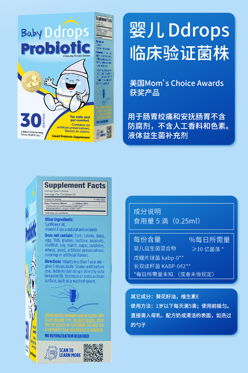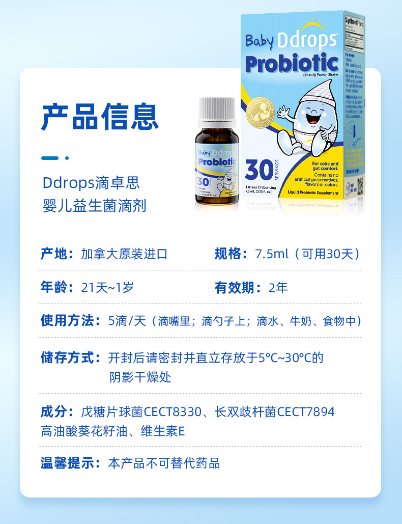 【跨境进口】Ddrops滴卓思婴儿益生菌滴剂 7.5ml/瓶 21天-1岁 | 报关后不支持退换货