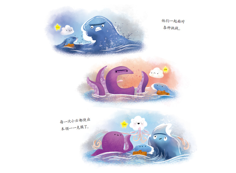 最终,小山与小云在灰茫茫的大海中重逢,此时的它们,不仅找回了最珍视的友谊,还带着各自在分离时收获的成长与新伙伴,一起成为了浪花滚滚世界里更温暖的存在,也让读者明白:真正的友谊,能让人在分离时勇敢成长,在重逢时愈发珍惜。