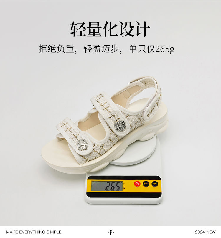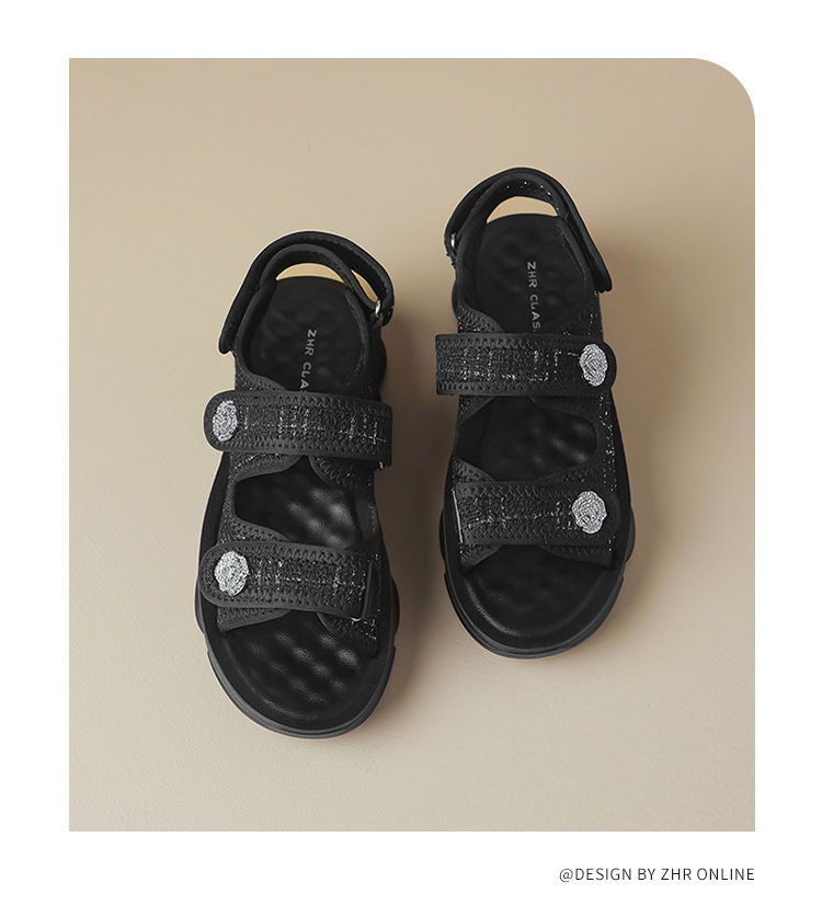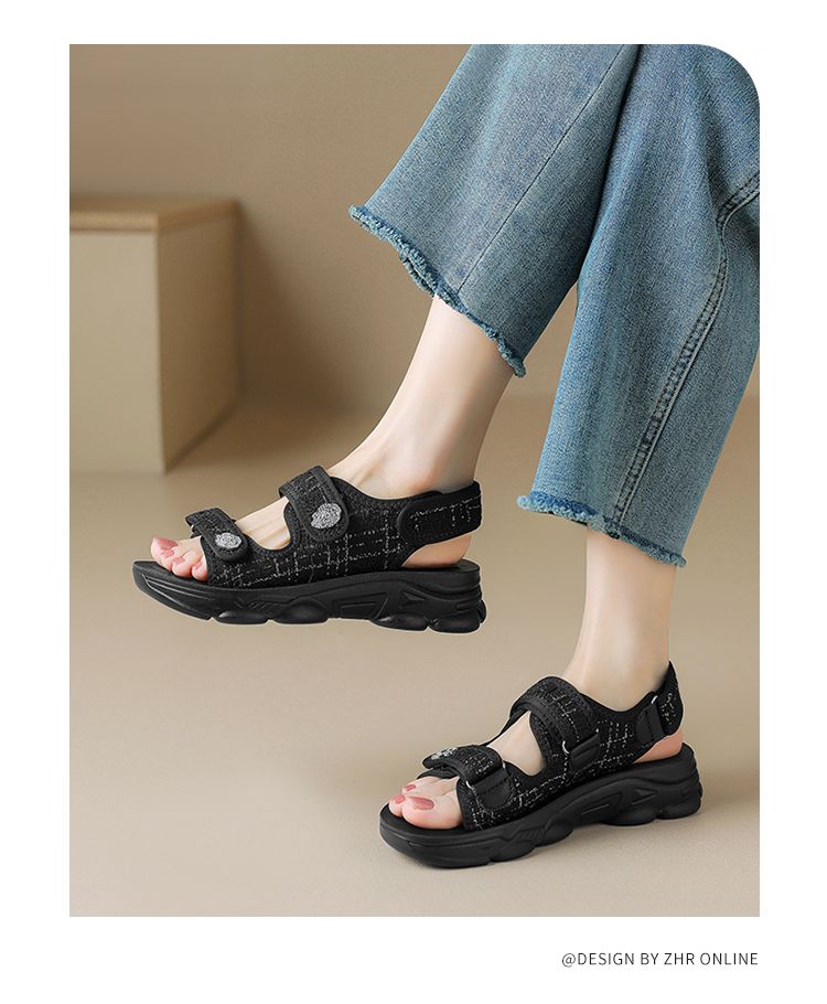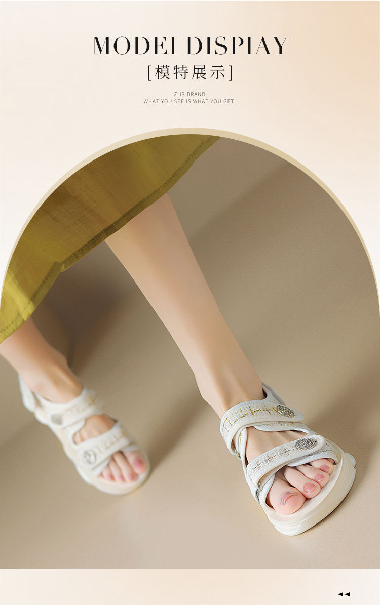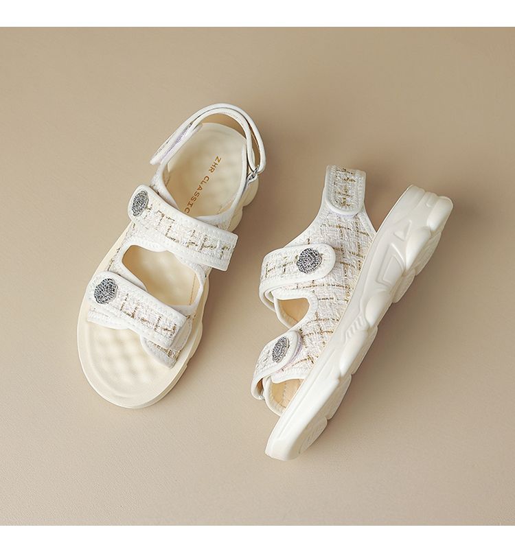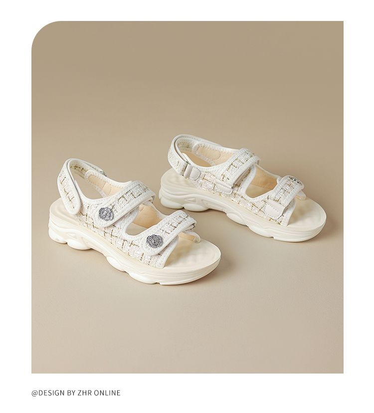 ZHR则则小香风凉鞋女厚底魔术贴运动凉鞋2024新款时尚外穿沙滩鞋