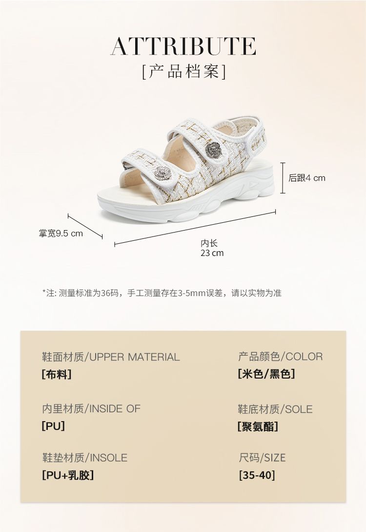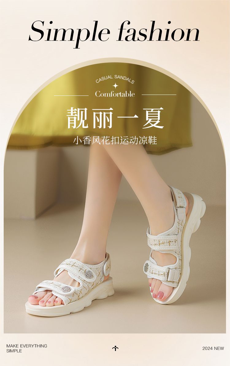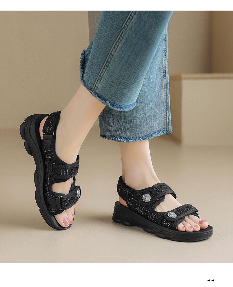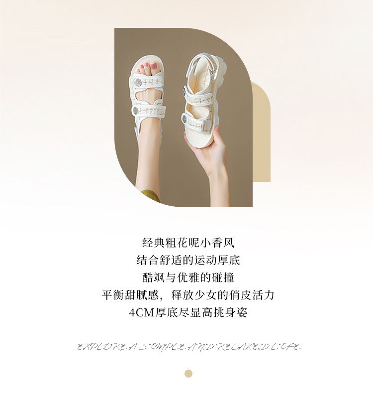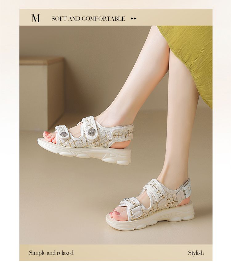 ZHR则则小香风凉鞋女厚底魔术贴运动凉鞋2024新款时尚外穿沙滩鞋