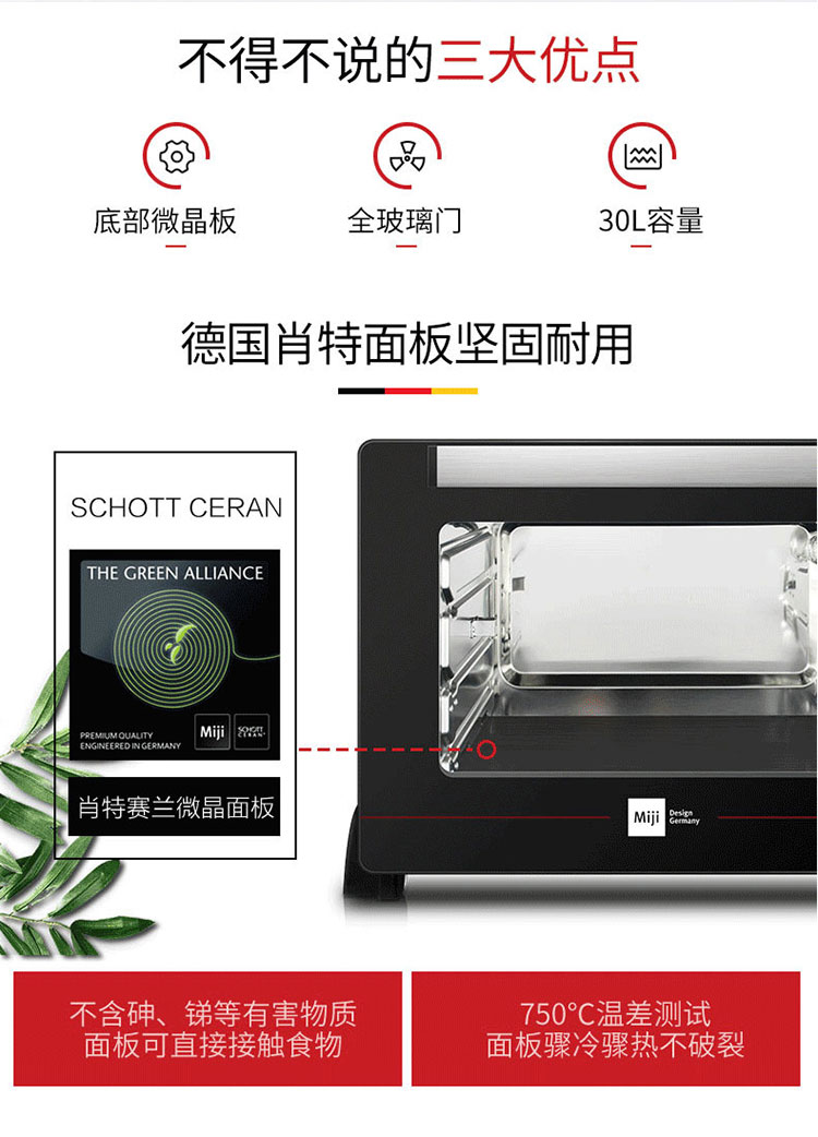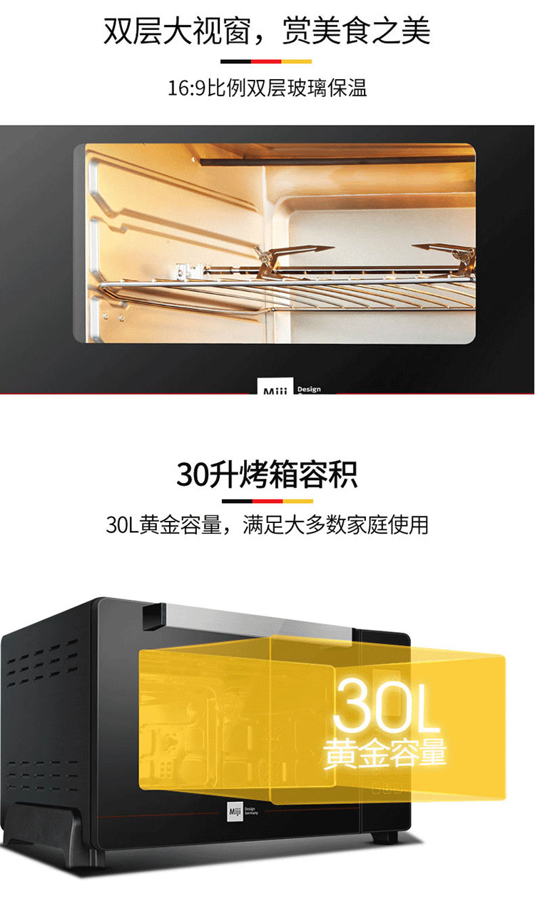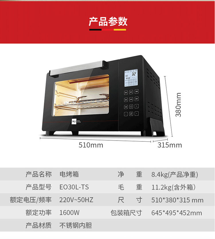 米技Miji电烤箱 家用30L大容量 多功能烘焙烤箱 德国精工EO30L-TS
