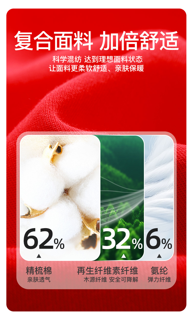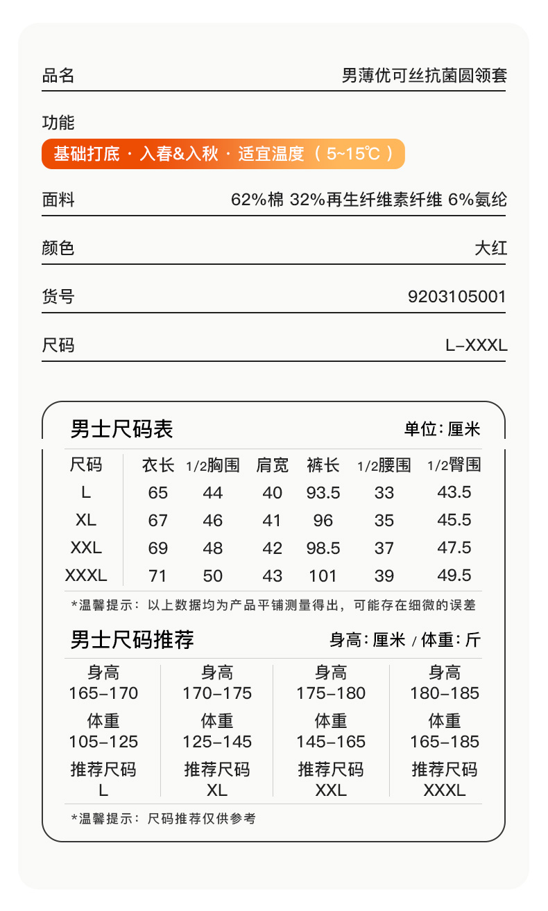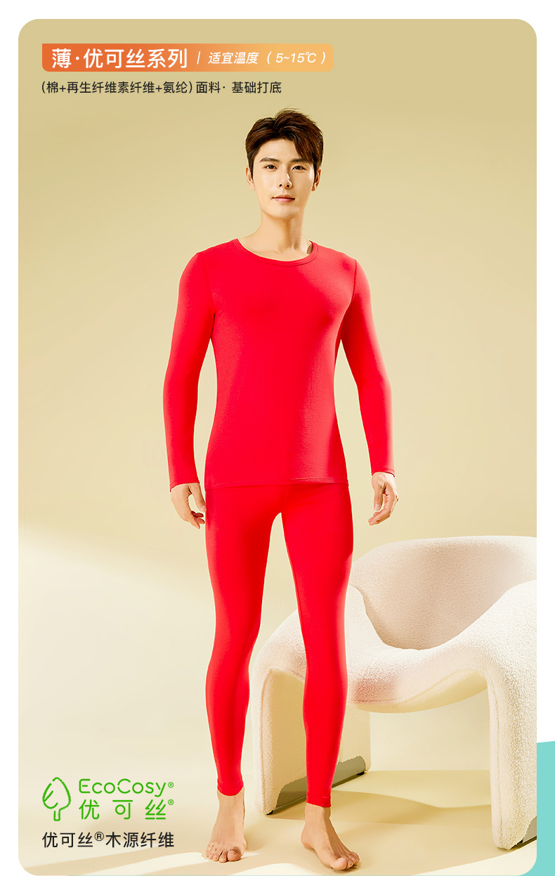 【本命红品】爱帝男式抑菌优可丝暖柔圆领内衣套