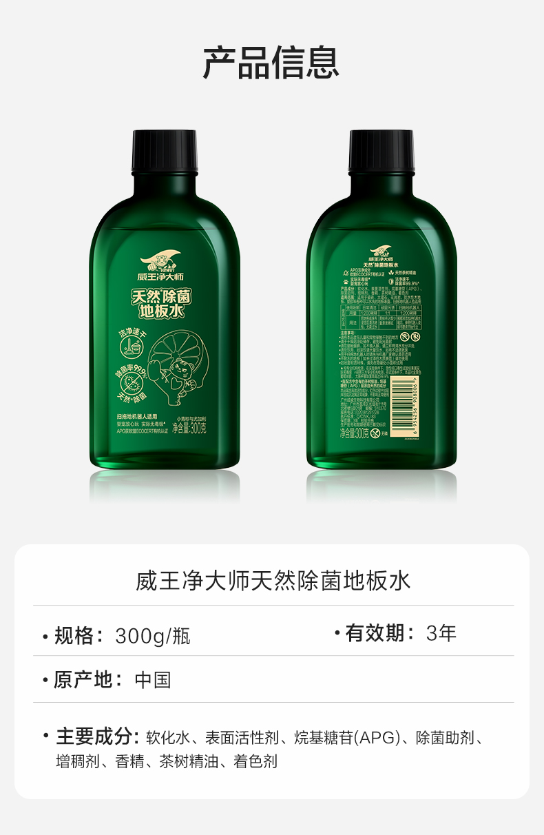 威王除菌地板水300g 天然强力 去污除菌 祛味速干