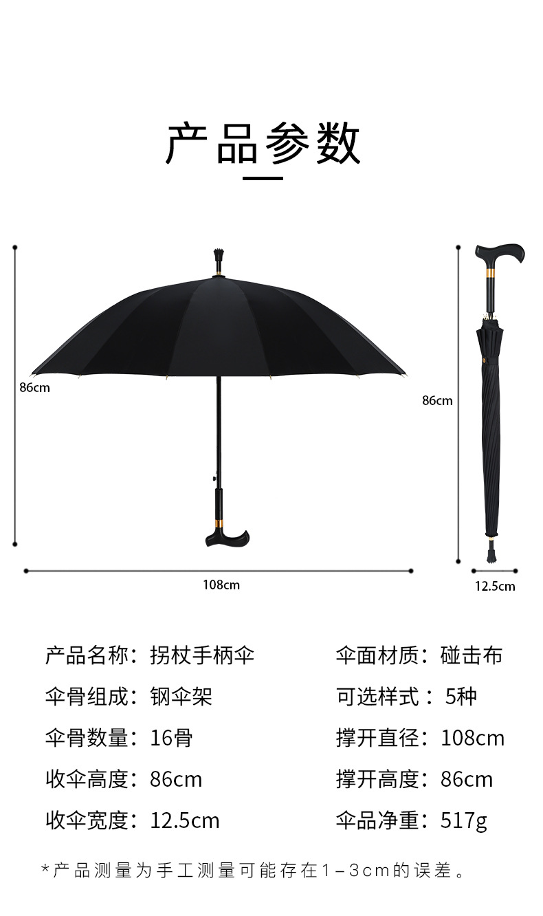 【16骨拐杖伞】中老年人长柄雨伞 轻巧便携 防滑头结实耐用加固长柄伞