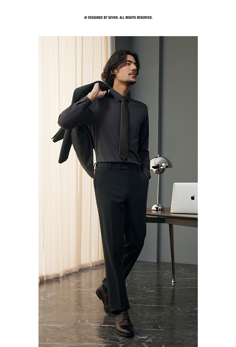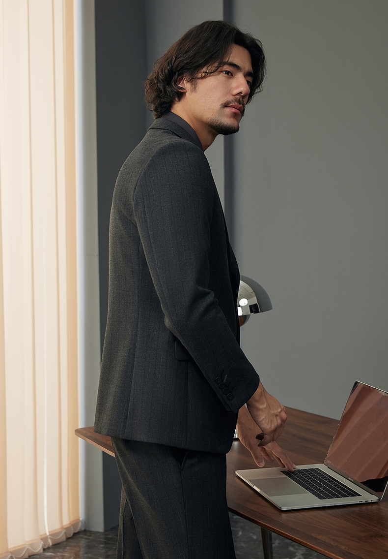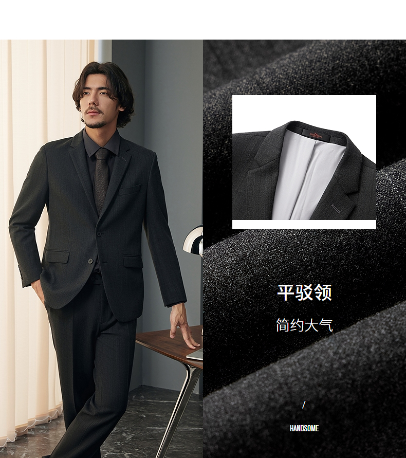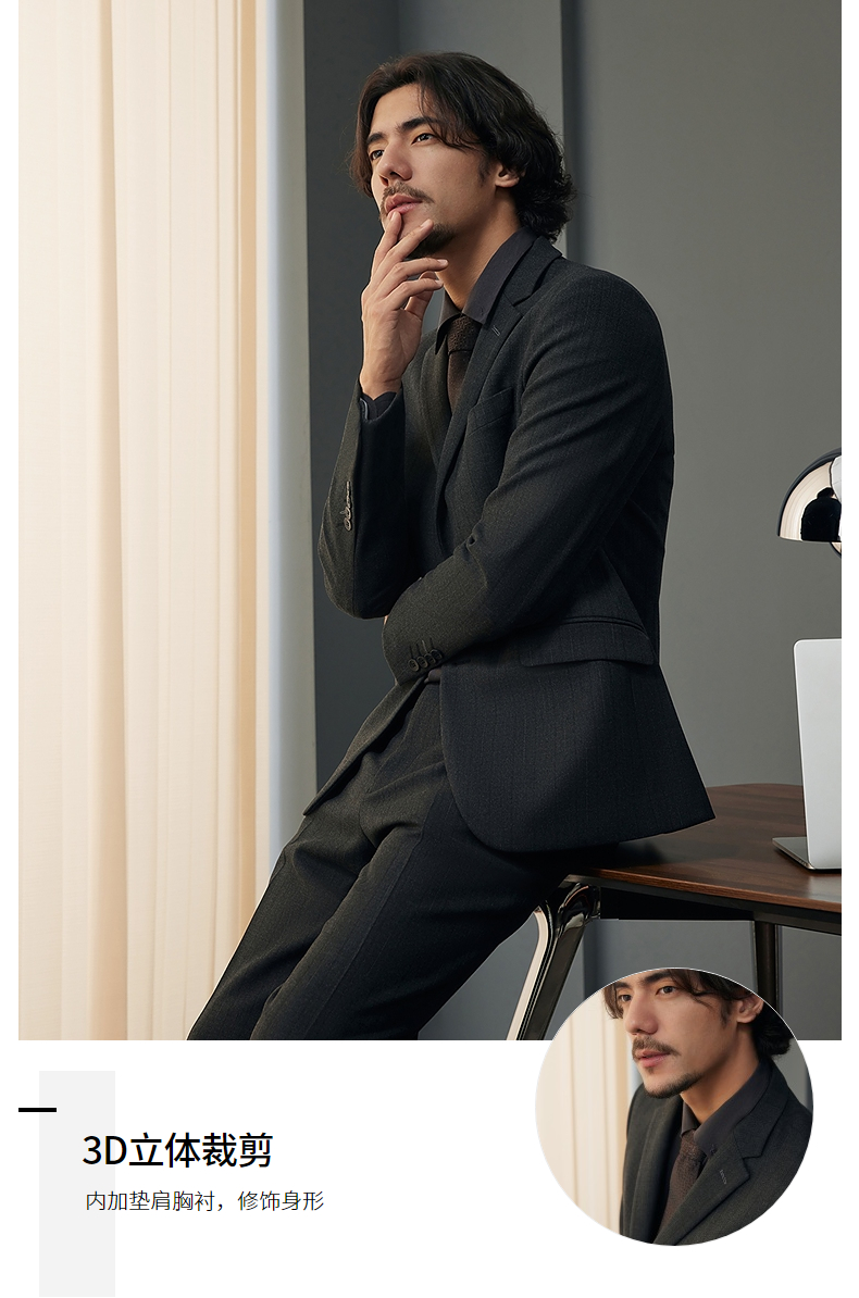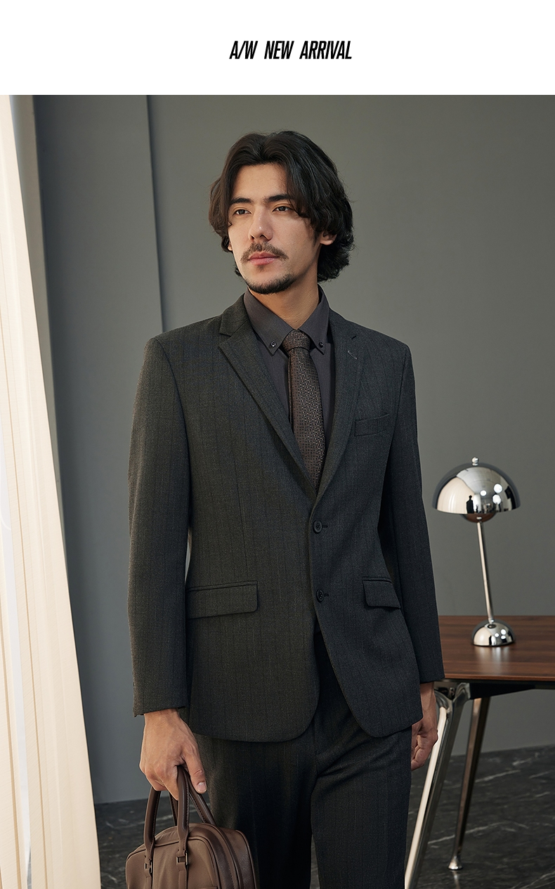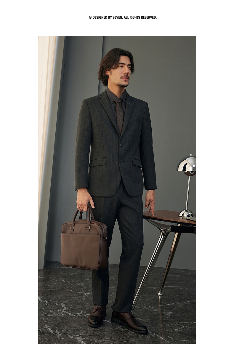 【婚礼季/犀牛褶】柒牌西服套装男2025秋冬新款商务休闲色织条纹西装礼服127C70050