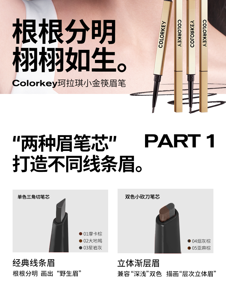 [2支装] Colorkey珂拉琪小金筷眉笔2.0 眉粉女防水防汗不易脱色