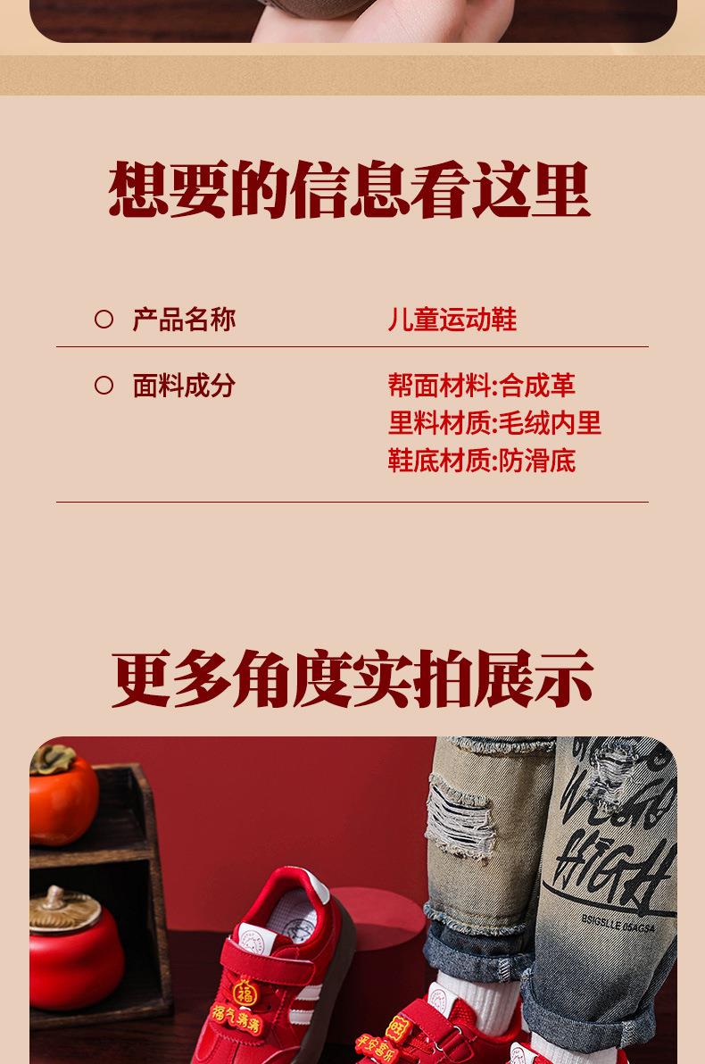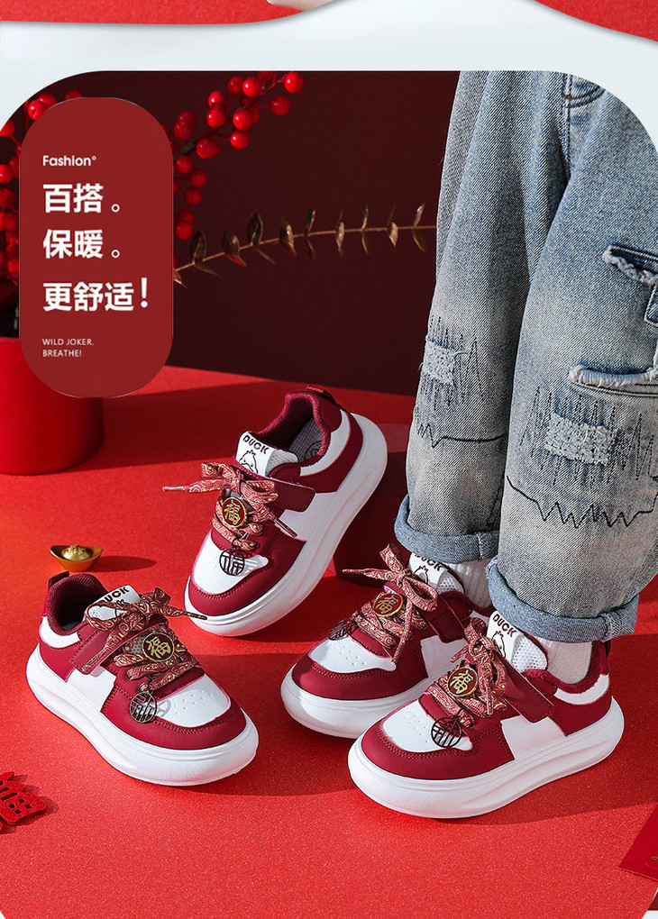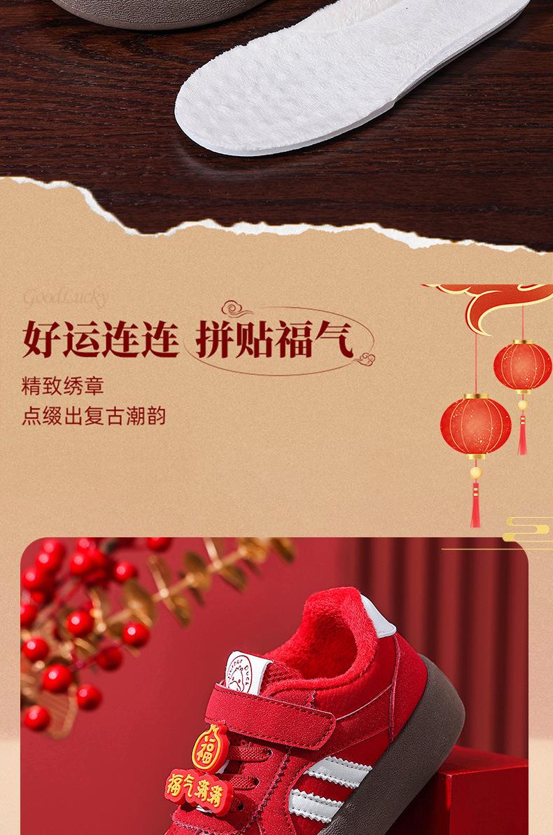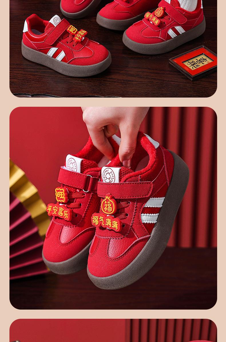 【小黄鸭】儿童新年鞋运动鞋儿童鞋加绒保暖德训鞋新年红色男女童棉鞋21-37