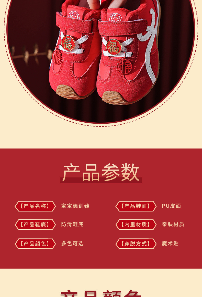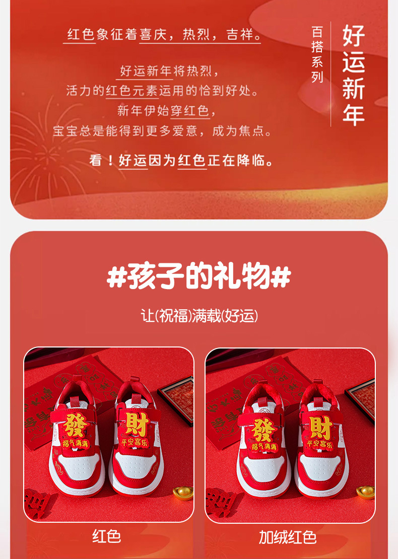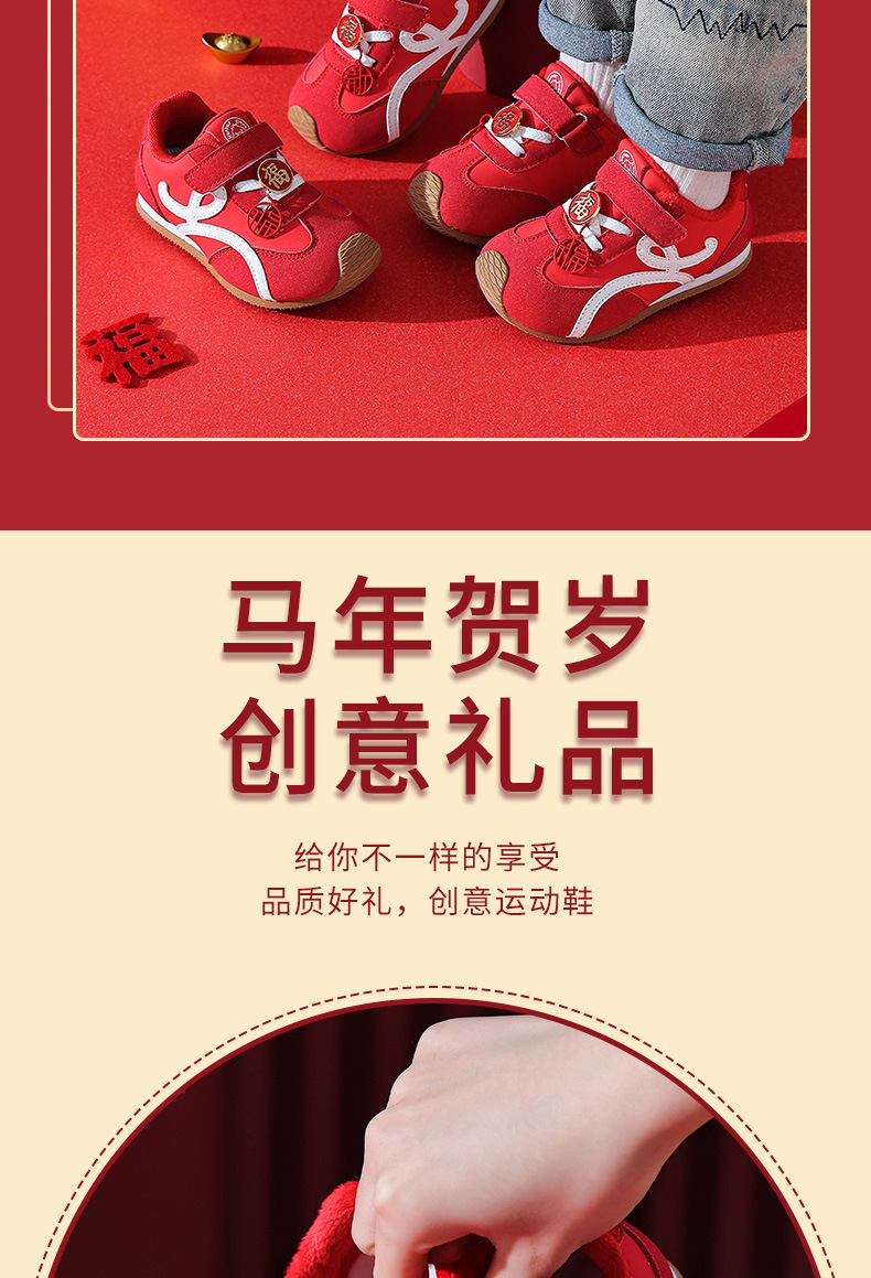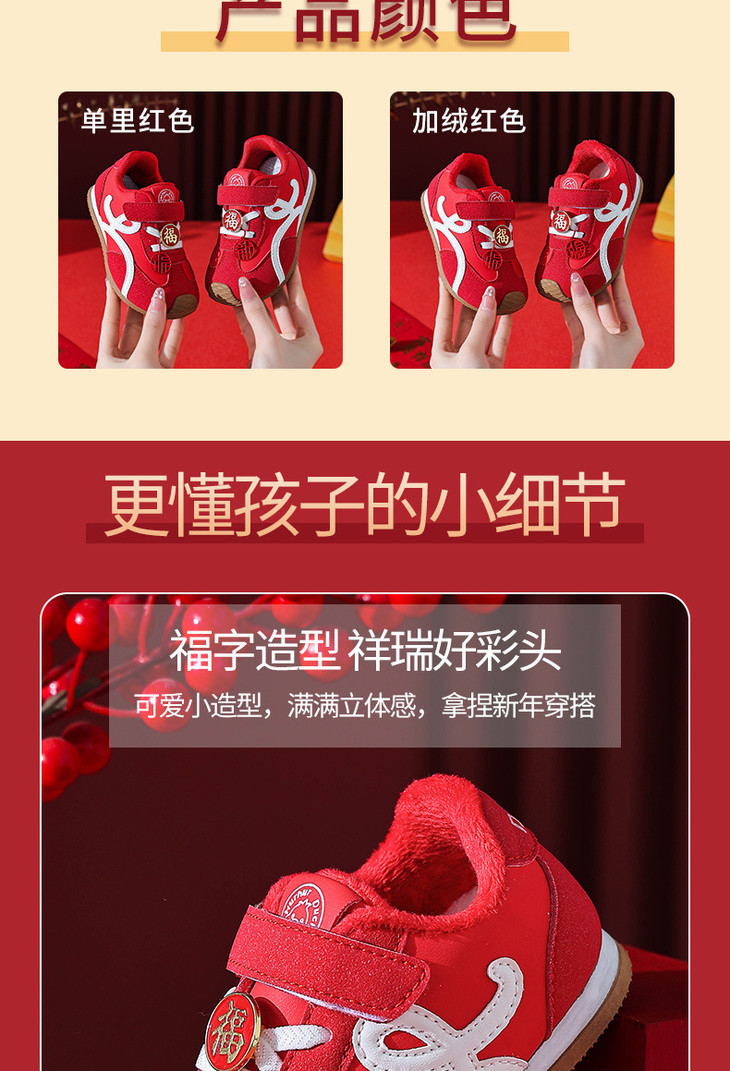 【小黄鸭】儿童新年鞋运动鞋儿童鞋加绒保暖德训鞋新年红色男女童棉鞋21-37