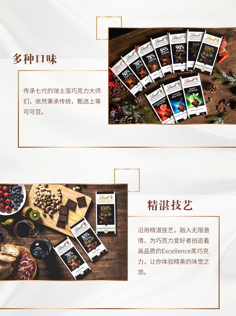 瑞士莲特醇排块装黑巧克力50g-100g 多种口味选择纤薄的形状 040682/041276/041974/044393/043322/043078/045058