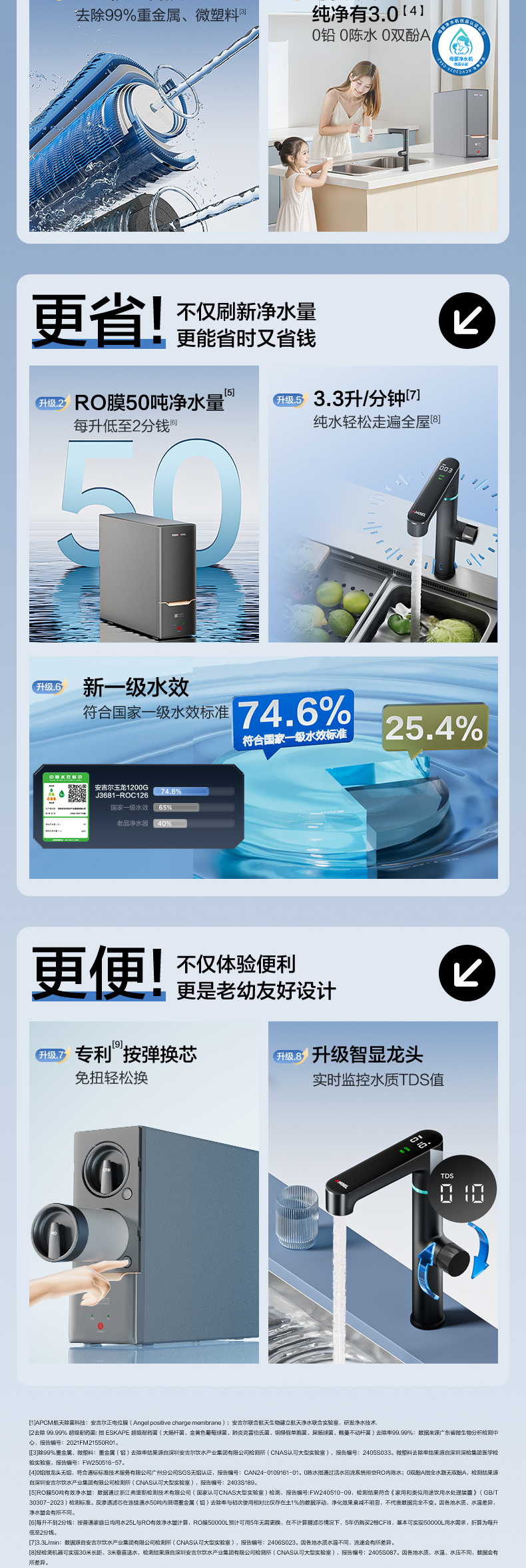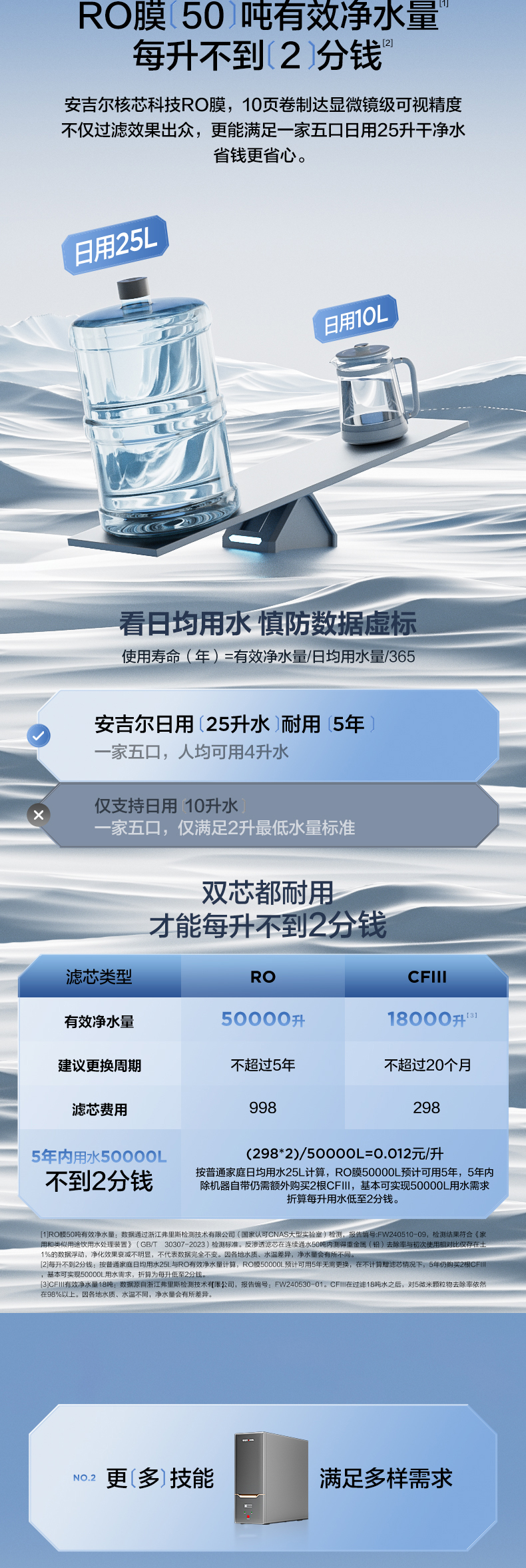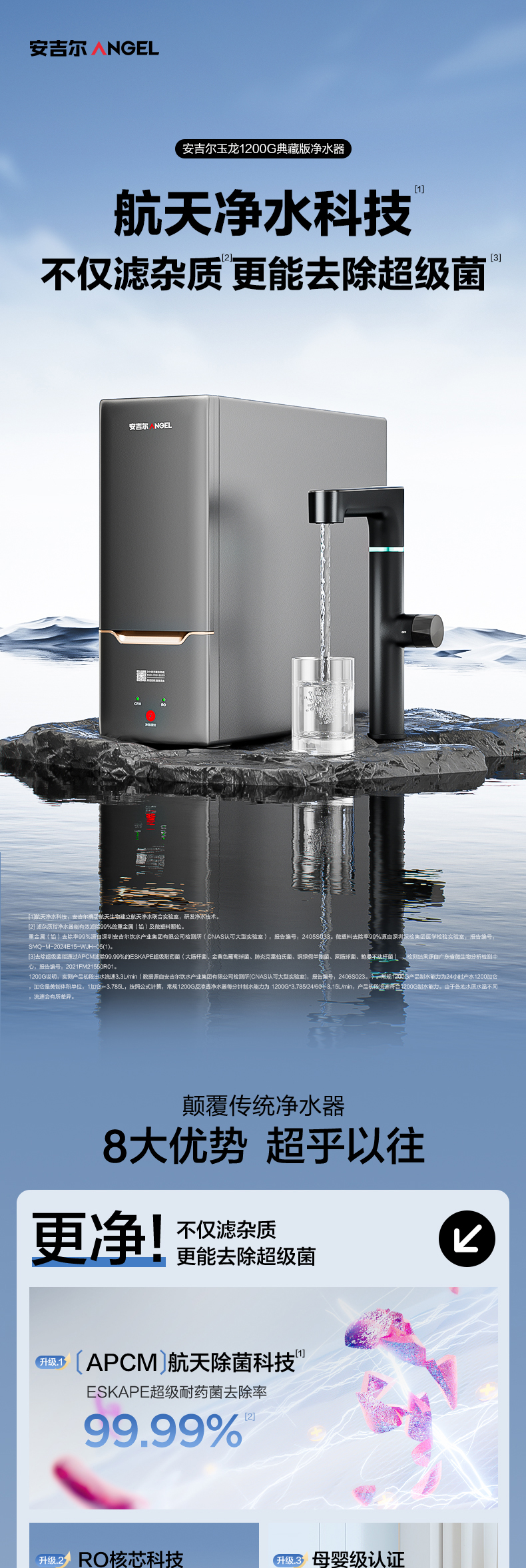 安吉尔E-Tech3800 净水器反渗透RO膜家用直饮