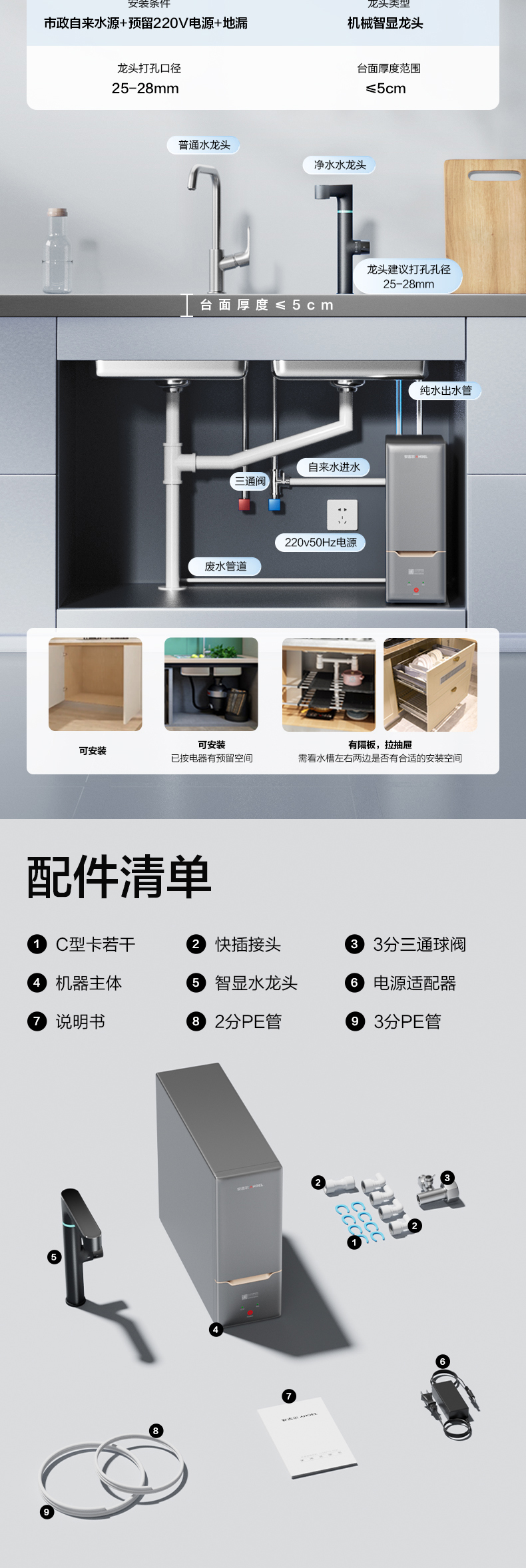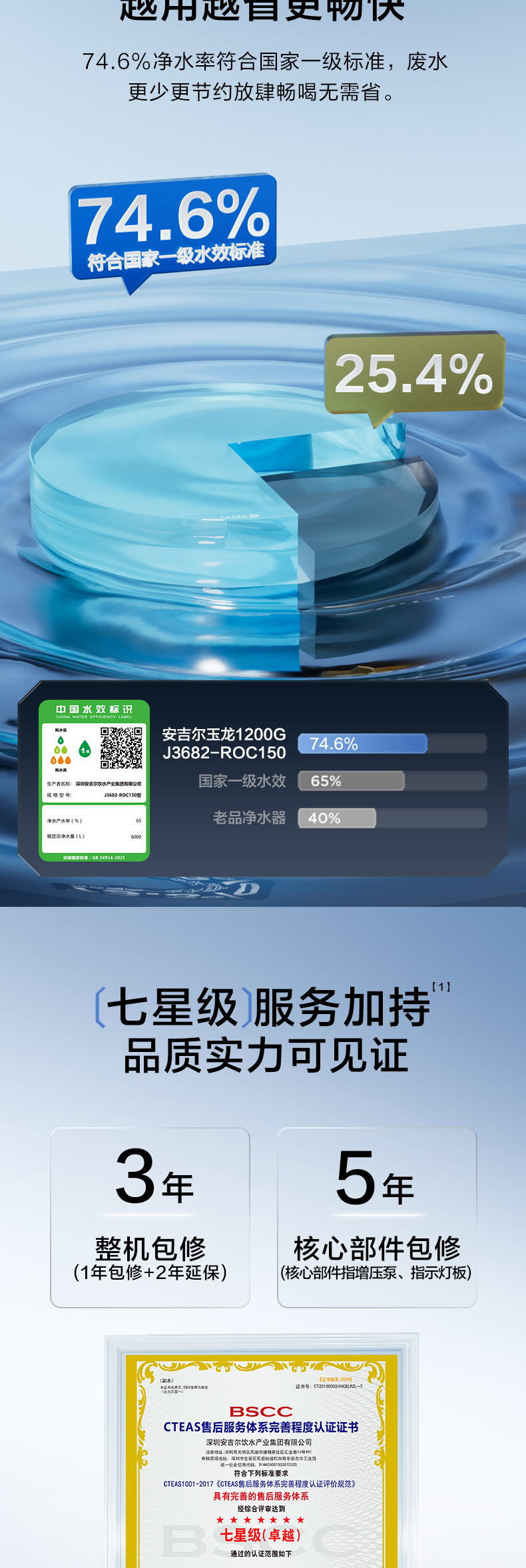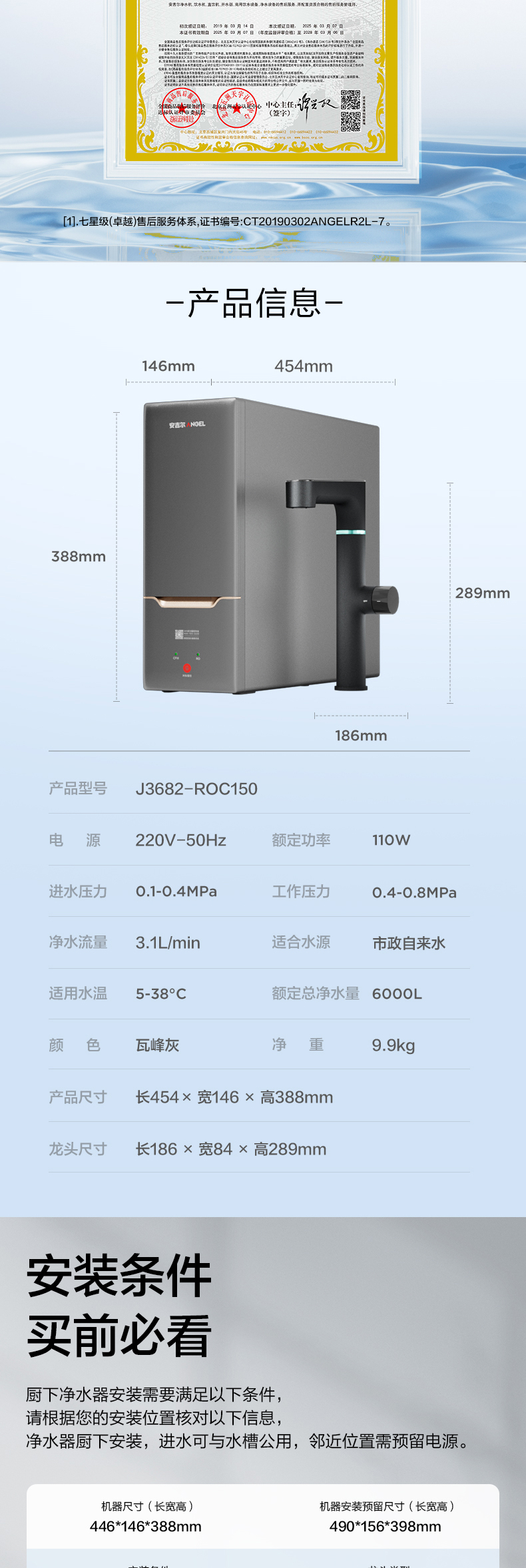 安吉尔E-Tech3800 净水器反渗透RO膜家用直饮