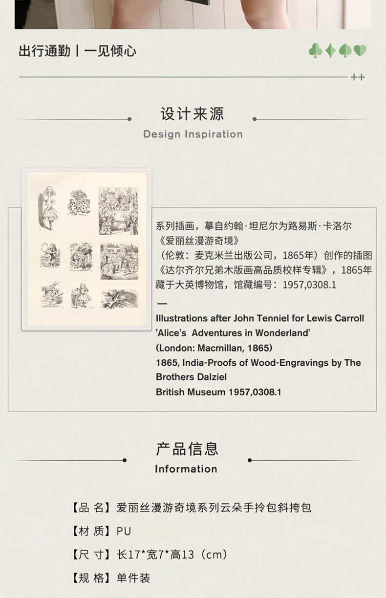 大英博物馆爱丽丝漫游奇境系列云朵手拎包斜挎包 送女友