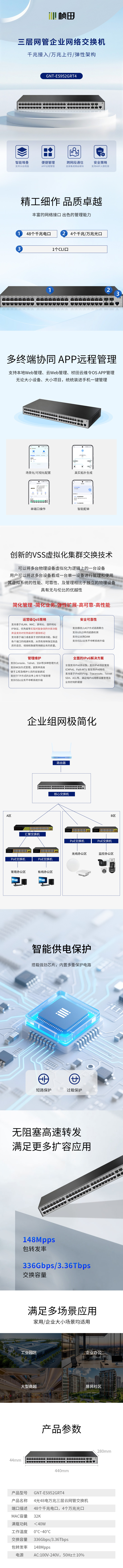 企业级48千兆电4万兆光三层网管全千兆核心交换机GNT-ES952GRT4