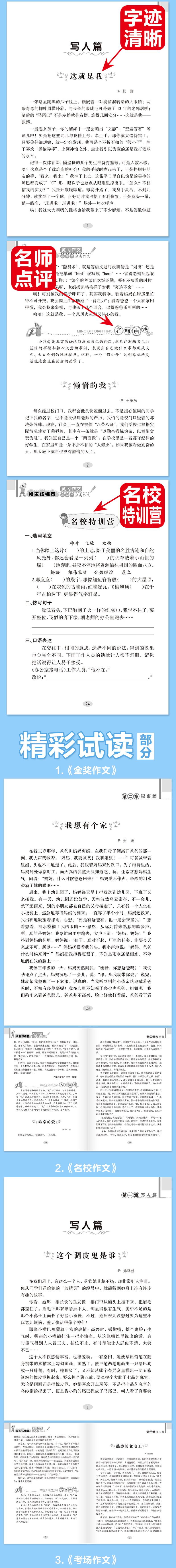 这套书收录了新版优秀的范文,具备创意的写作思路,实用的写作方法,让你在阅读中领悟作文精髓,在感受中拓宽行文思路,掌握写作技巧,打开作为成功之门。