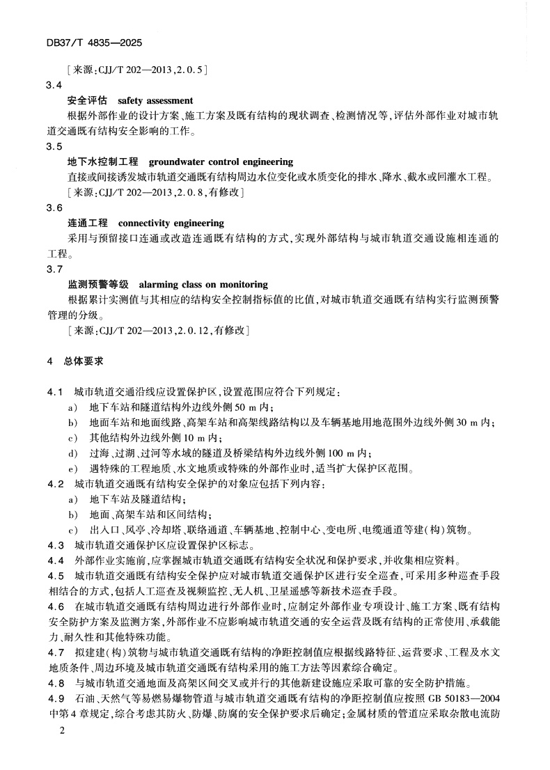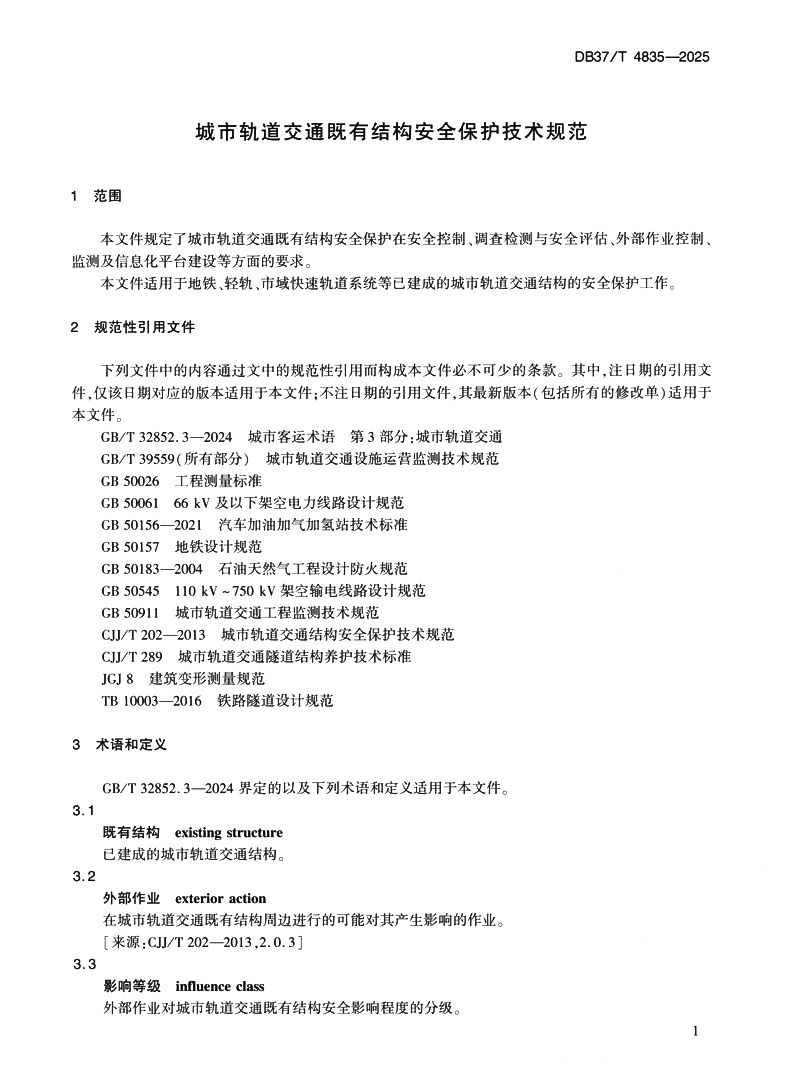 城市轨道交通既有结构安全保护技术规范(DB37/T 4835—2025)