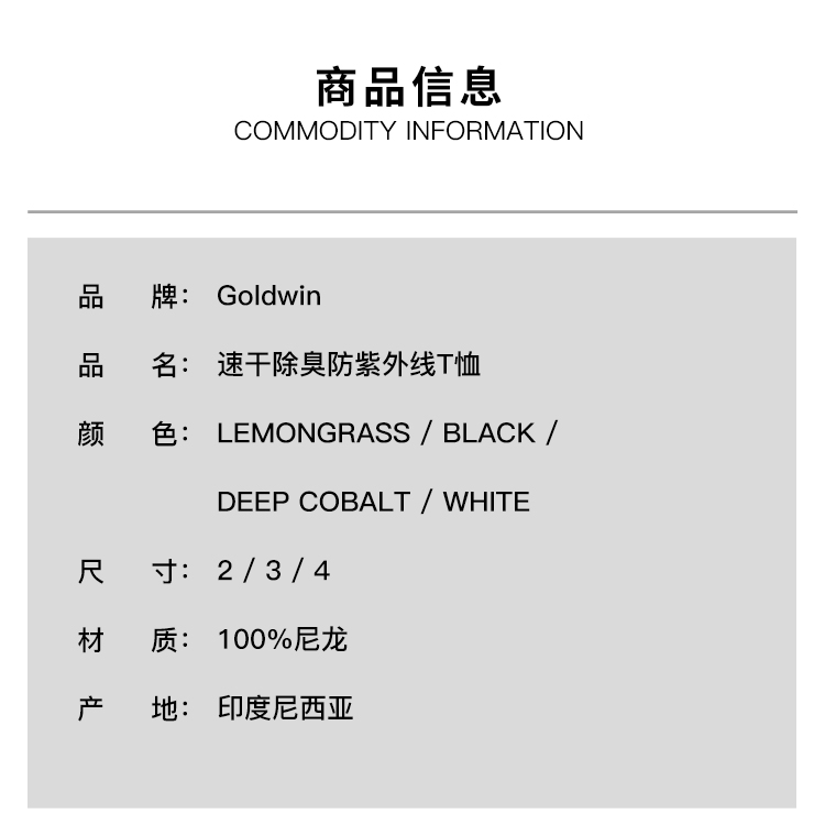 Goldwin WF-Dry T-shirt 运动系列速干除臭防紫外线圆领短袖T恤