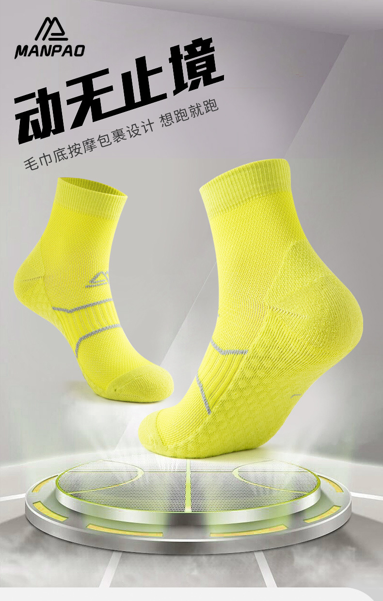 【3双装】漫跑 秋冬加厚毛巾底减震专业运动袜跑步打球实战中筒袜高帮防滑速干袜