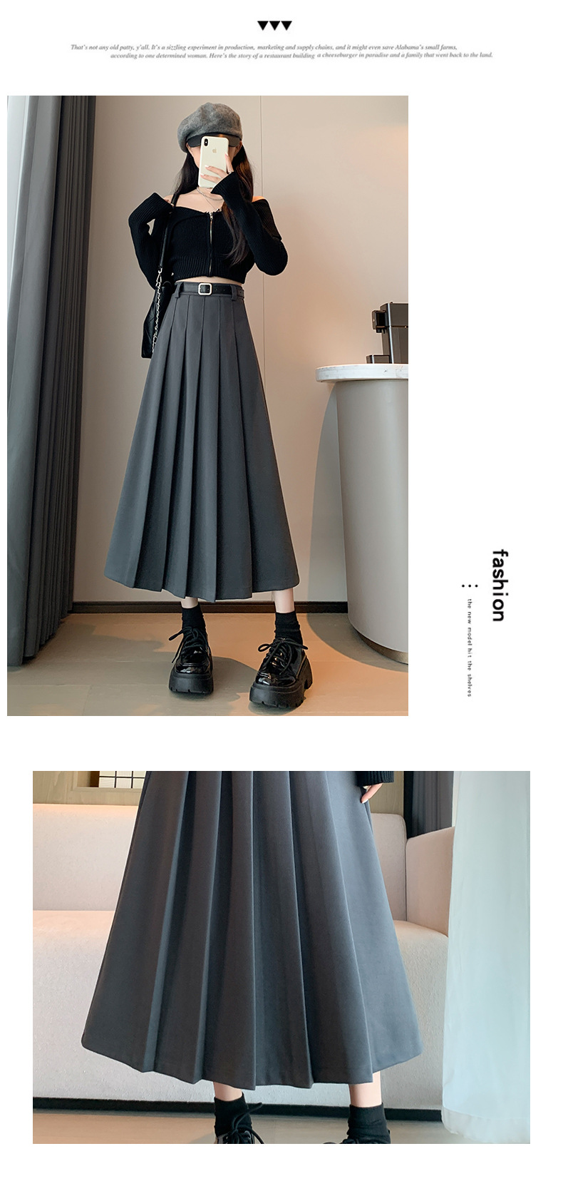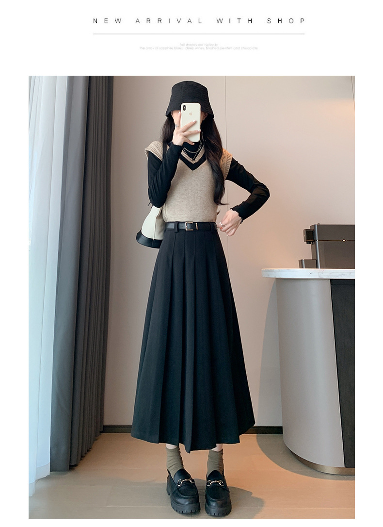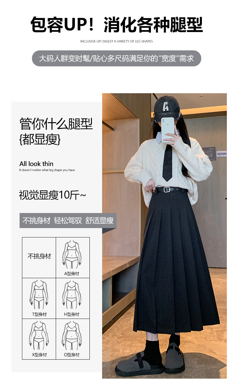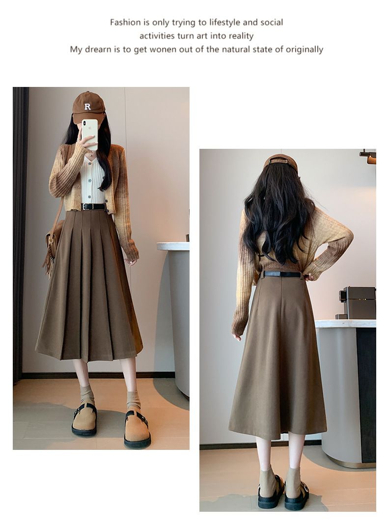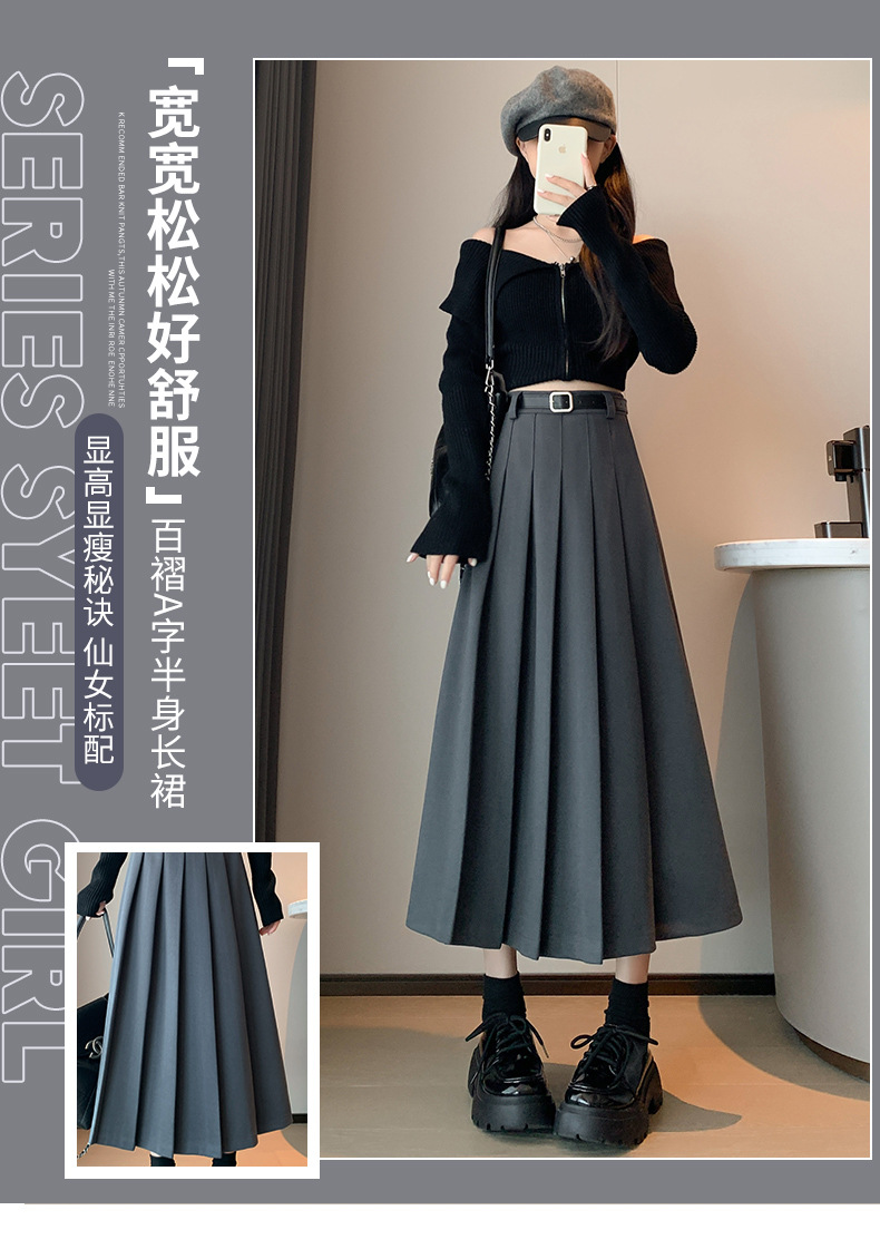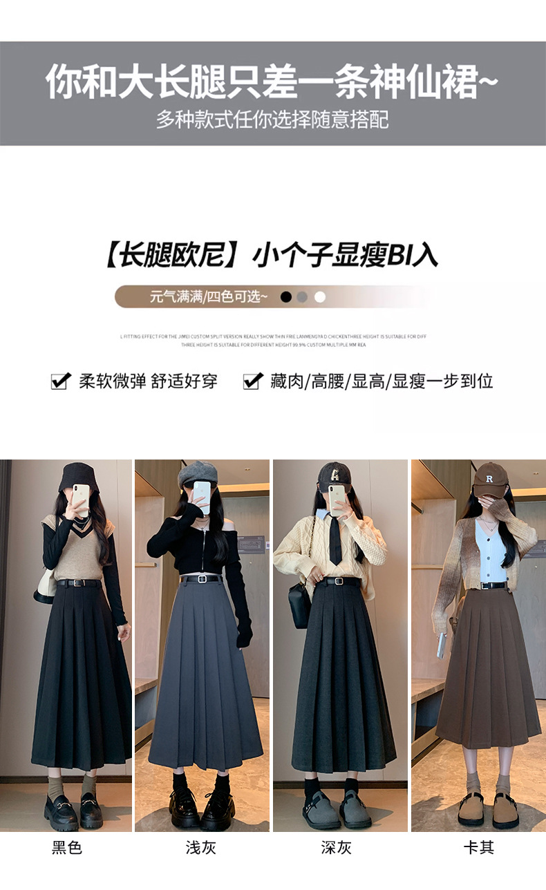 【送皮带】西装皮带百褶裙 加厚高腰显瘦 毛呢百褶裙皮带款 复古百搭中长裙