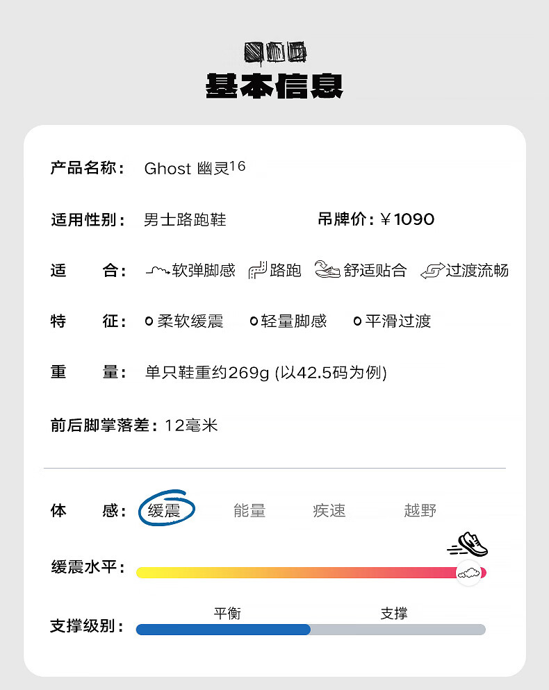 布鲁克斯 Brooks Ghost 幽灵16男女款 减震透气运动跑步鞋