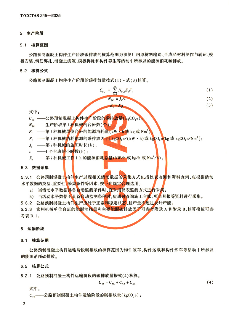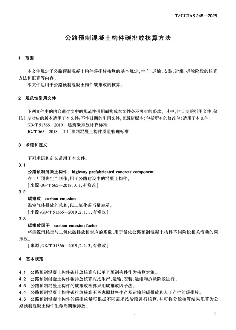 书名:公路预制混凝土构件碳排放核算方法T/CCTAS 245—2025