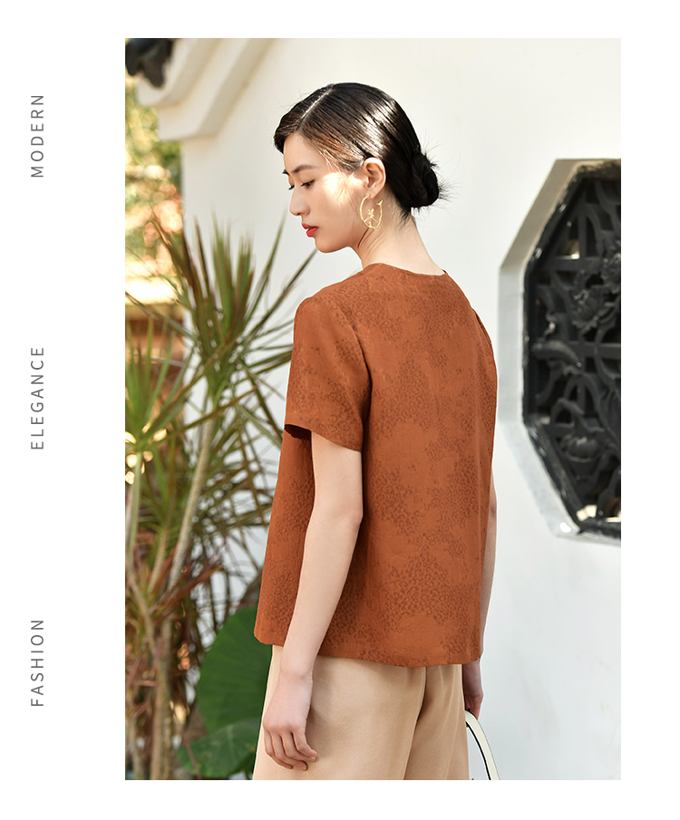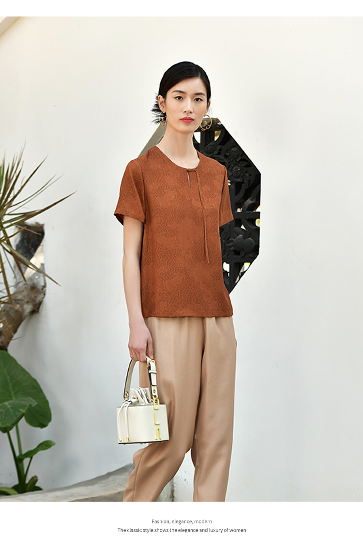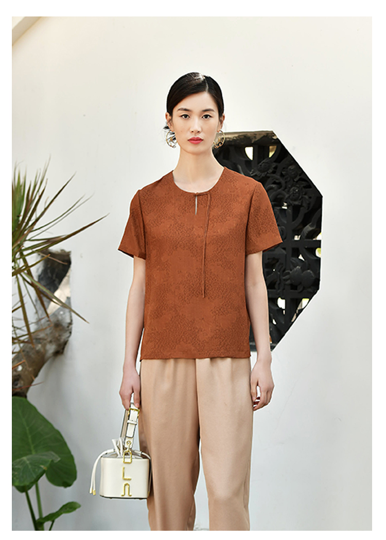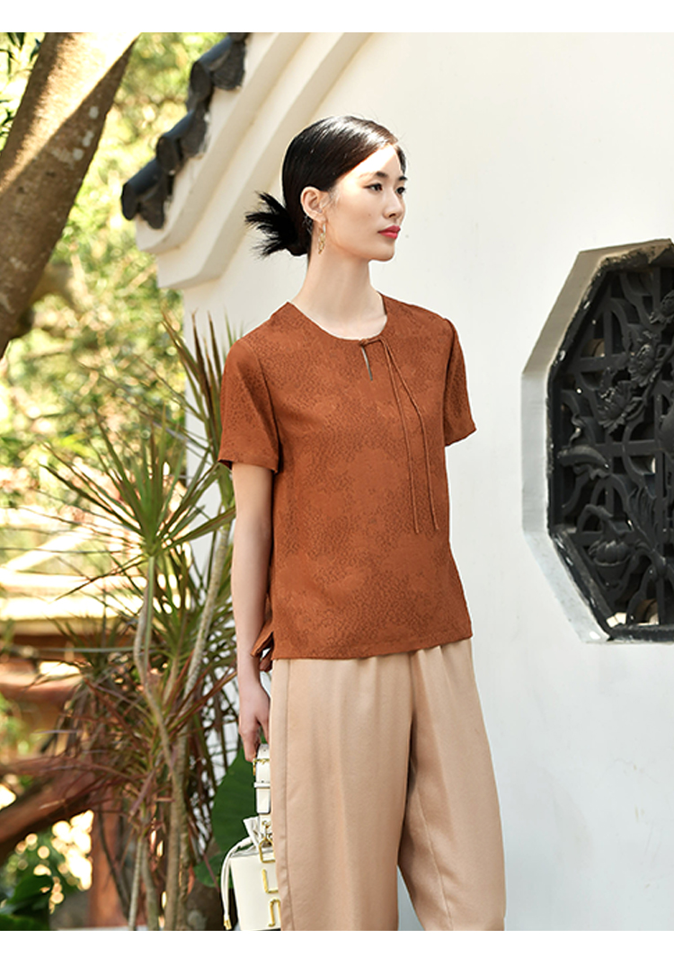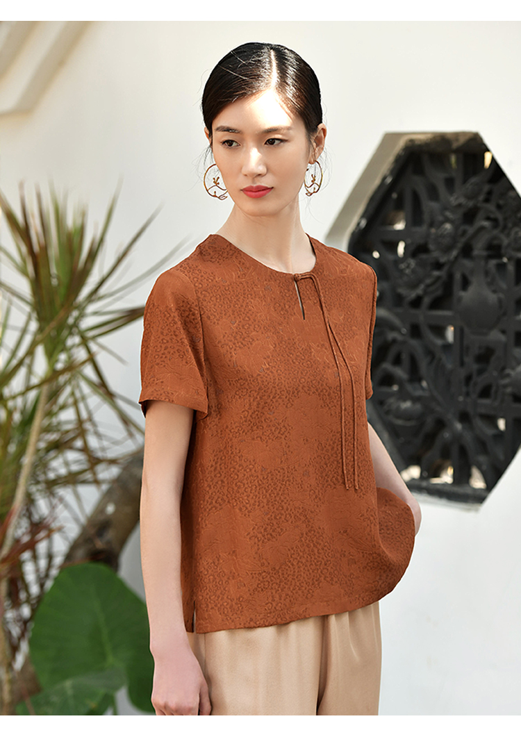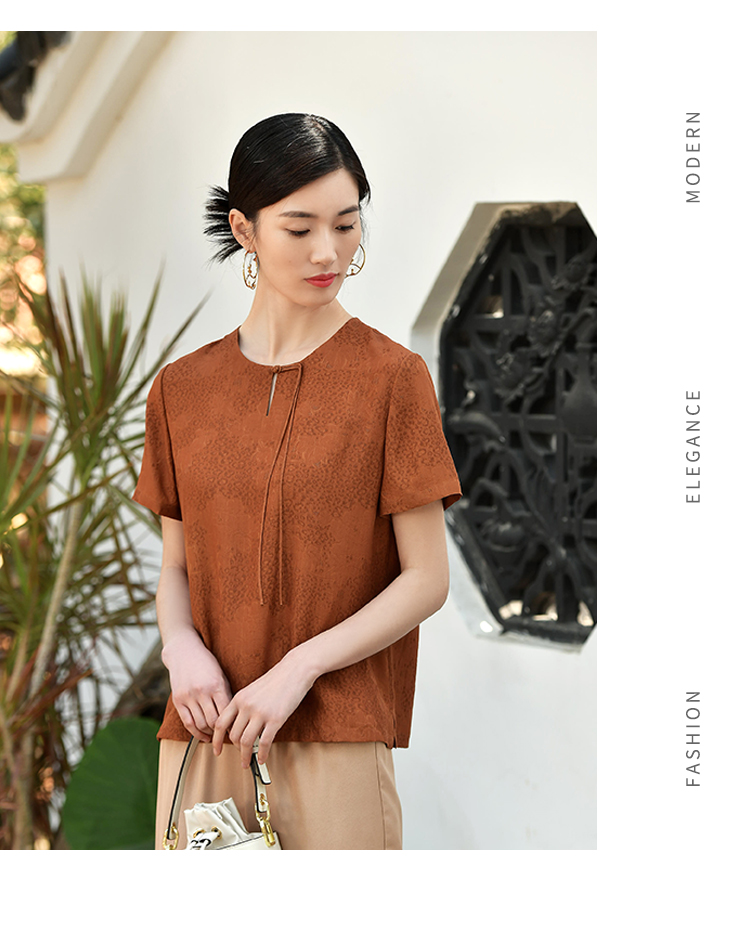 佐尔美夏季新款 国风气质桑蚕丝真丝衬衣女E32CS30
