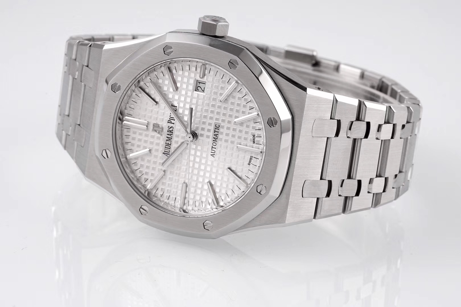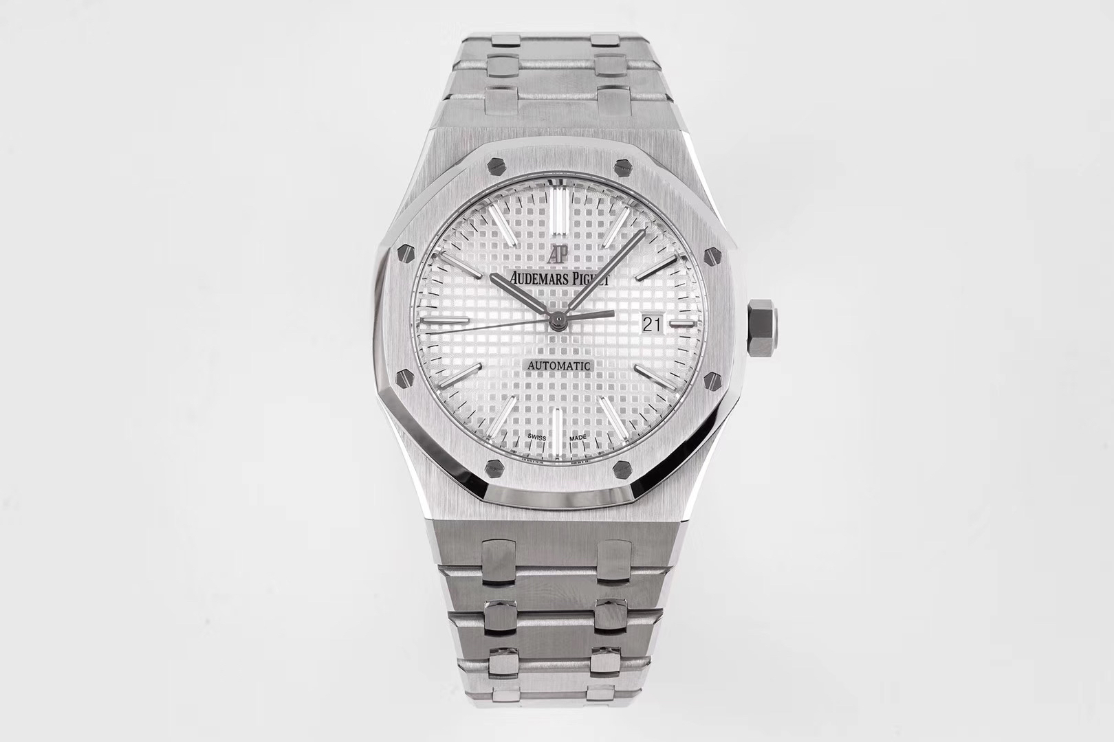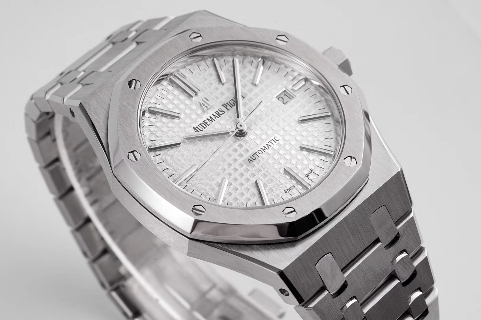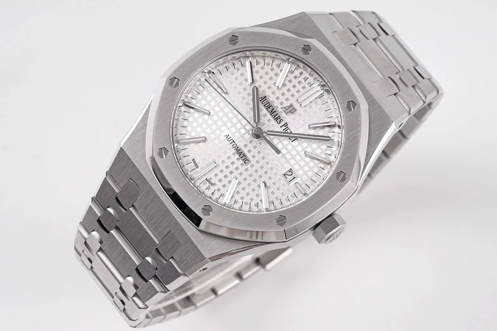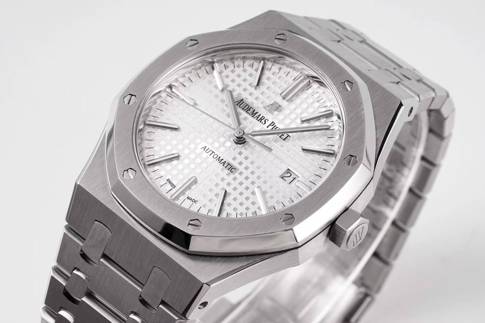 ZF重新定义爱彼皇家橡树15400系列!解决长久以来各大厂家都无法突破的难题 【技术突破】 1️⃣.解决厚度问题,采用9015机芯改爱彼CAL.3120一体机!实现厚度达到9.8mm与原装一样(市面其他版本最薄的在11mm左右) 2️⃣.天价表针 瑞士制造(开仿表界先例):等价黄金的表针其光泽度,形状,立体感和夜光。效果可以秒杀现在所有仿品 【修正主要细节】 1️⃣.表盘“Audemars Piguet”与表盘是呈现凸起状,而非持平状态。 2️⃣.ZF通过提升成从而提升技术,把日历的字体做到极致。 3️⃣.各位可以对比一下现在市面的所有版本,会发现ZF表盘上的“饼干纹理”更佳立体。饼干纹上的细纹十分精妙。表盘颜色也可傲视群雄! 4️⃣.钢带头粒的“缓冲带”致敬原装,松紧的感觉一模一样。这也是尝试了无数次的结果。 5️⃣.钢带扣上的AP字印LOGO是可以微微活动的,品味原装的细节,才能体现精髓。 6️⃣.超级自动陀,颜色于原装一致(市面一般版本均偏红)其上的ap家族徽章浮雕也更加精致润泽。
